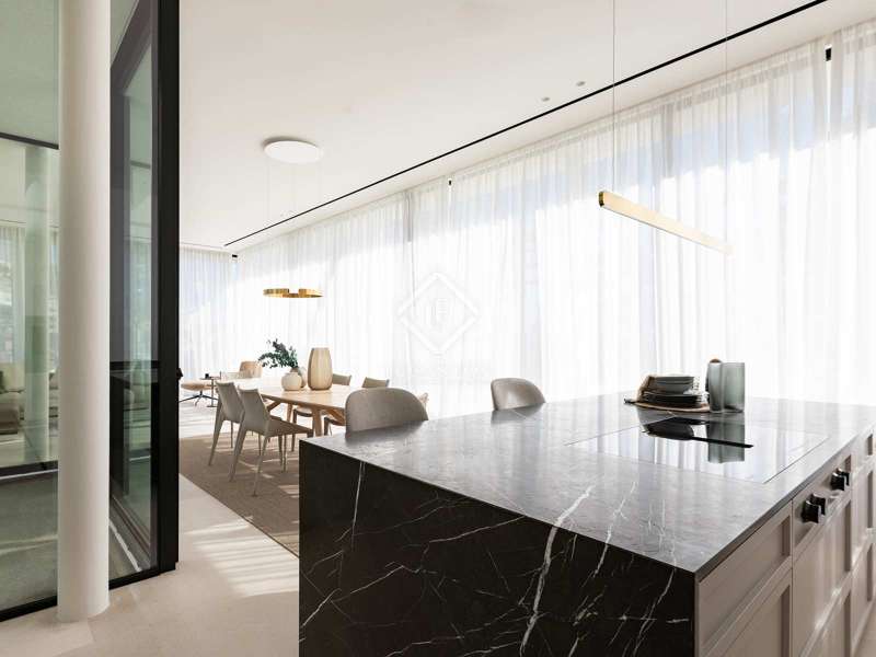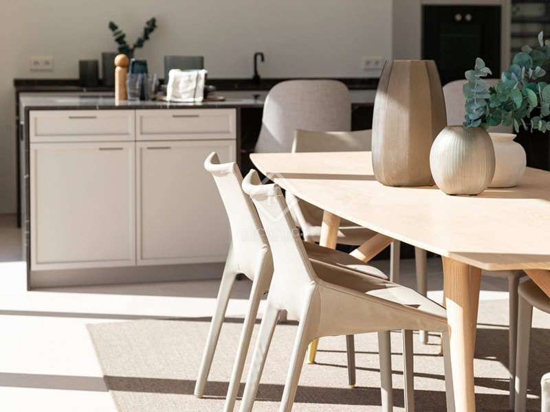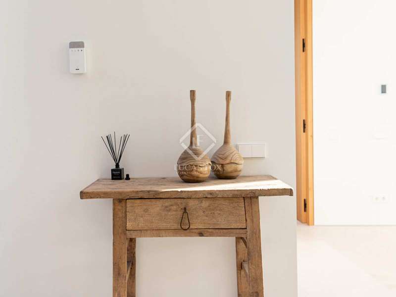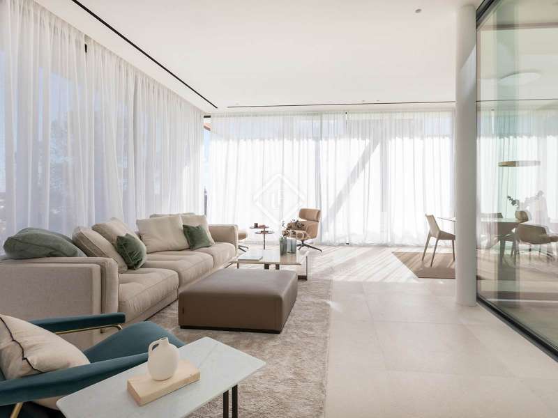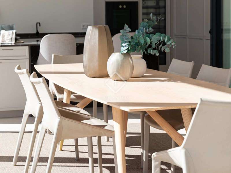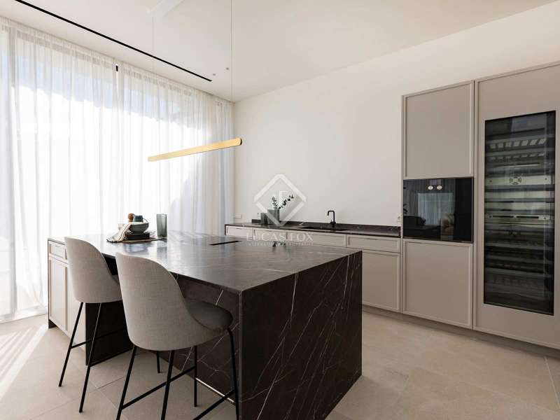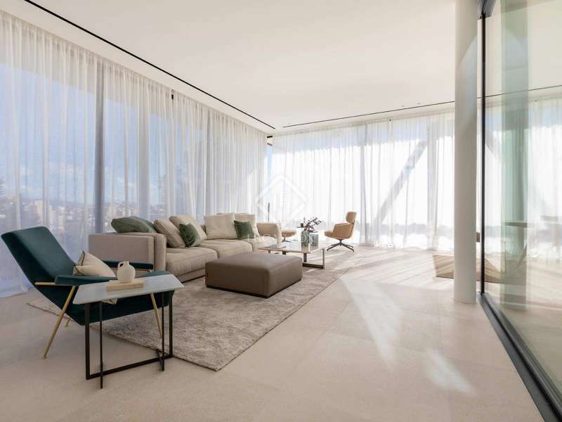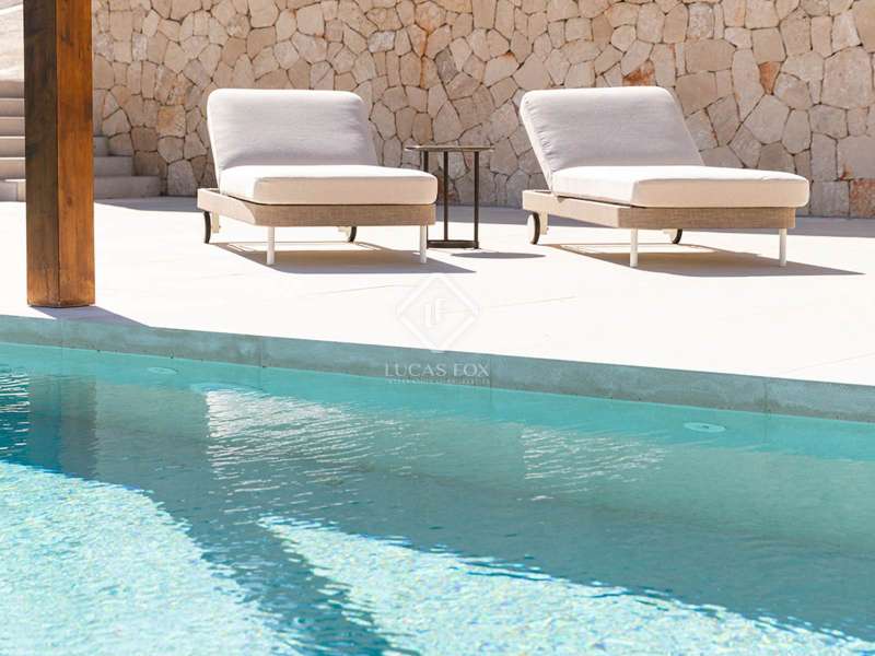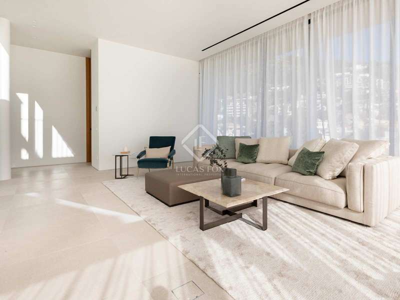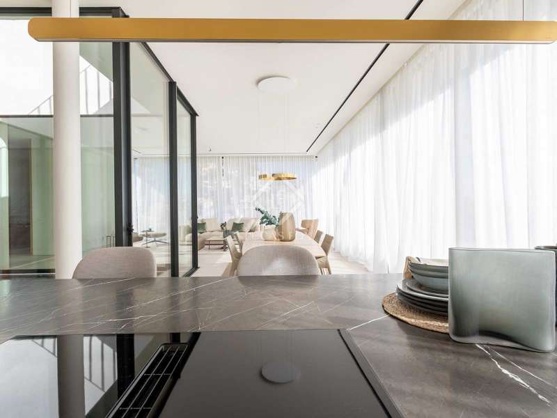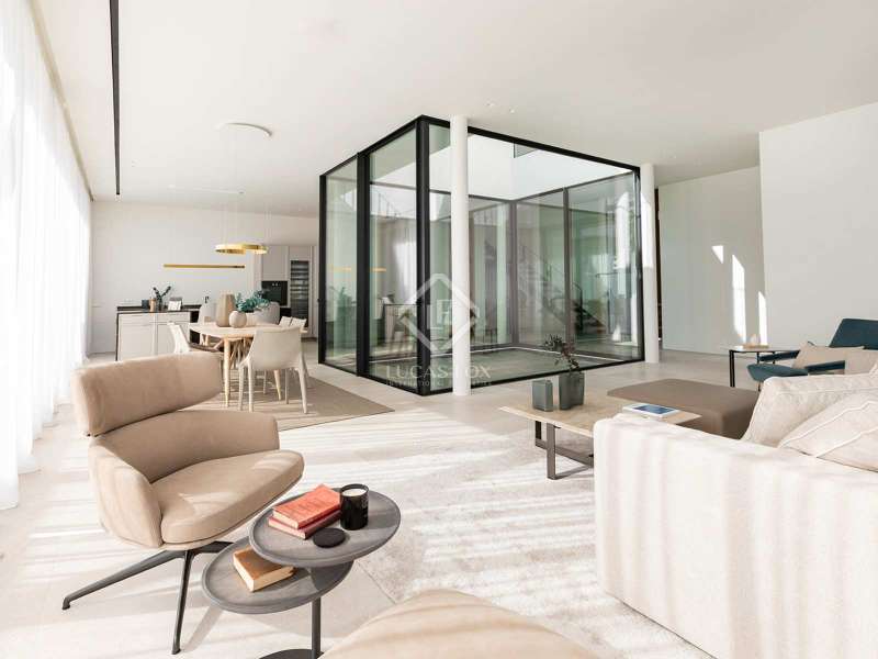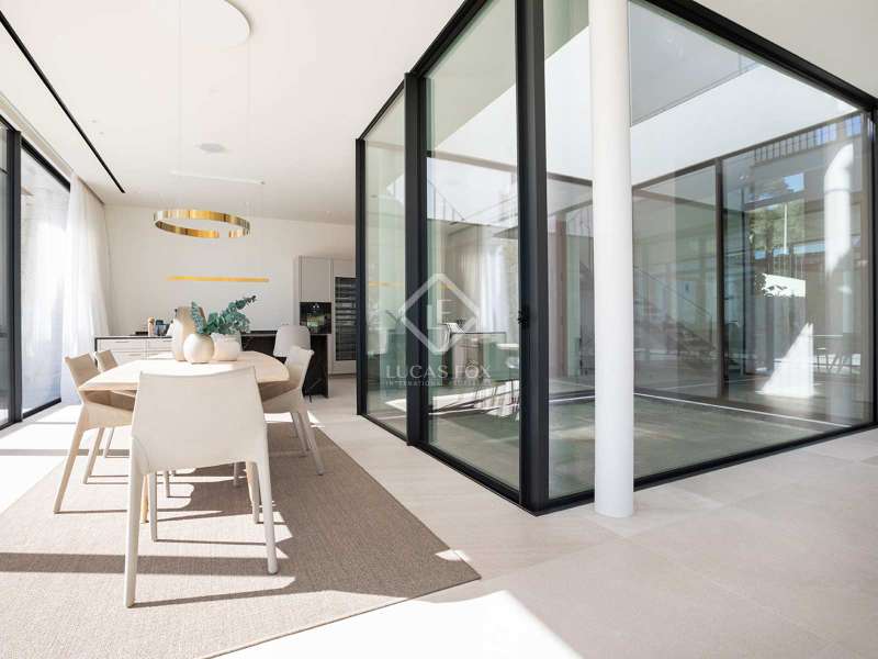 This luxury villa offers over 500 square metres of sophisticated living space, seamlessly blending indoor and outdoor environments. Key features of this exceptional property include a private pool, expansive terraces, a central atrium that floods the interior with natural light, and underground parking for three cars. Situated on gently sloping land, the villa is surrounded by landscaped gardens with an infinity pool at the lowest point. The terraces and living areas are oriented towards the mountains, enhancing the open-concept interior connection to the natural surroundings. At the heart of the ground floor is a plant-filled atrium, illuminating the space with natural light. Radiating from this central feature are the entrance hall and staircase, a pantry/utility room, a double bedroom with an en suite bathroom, and a spacious open-concept kitchen, dining, and living room. These areas are arranged on split levels, reflecting the terraced design of the outdoor spaces. Floor-to-ceiling glass along one side of the living area offers uninterrupted views of the terrace dining and seating areas, maximizing the potential for outdoor living. The first floor comprises three additional double bedrooms, each with its own bathroom. Two of these bedrooms face the atrium, ensuring plenty of natural light, and have access to a shared terrace with stunning countryside views. This modern home is constructed to the highest standards, using the finest materials and top-quality appliances. The consistent use of pale woods, natural stone cladding, and abundant glass throughout the interior and exterior creates a cohesive aesthetic. This design ensures the property is warm, bright, and contemporary, while providing a close connection to nature and convenient access to Palma and the coast. Please contact us to arrange a viewing.