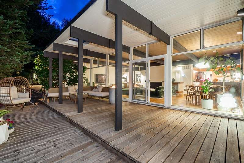 Step into a rare opportunity to own a true architectural treasure. This 3-bed, 2-bath home isn’t just a place to live—it’s a mid-century modern masterpiece, thoughtfully preserved and beautifully integrated into its natural surroundings. Set on a serene half-acre on the quiet side of PanoramaRidge, it’s tucked high into the tree line, offering privacy, tranquility, and views of Boundary Bay and Crescent Beach. The home’s connection to the outdoors is undeniable—lush, updated landscaping surrounds the property, enhancing the flow between inside and out. The detached garage is perfect for a home studio or office. Included in the sale are architectural plans for a stunning renovation, giving you the chance to build upon the original vision while making it your own.