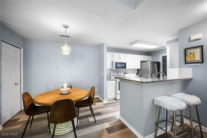 Welcome home to this beautifully updated second-floor ranch-style condo, perfectly situated just across the street from South Park Mall and minutes from highways, shopping, and dining. This 2-bedroom, 2-bathroom unit features an open-concept layout with vaulted ceilings that create a spacious, airy feel.Enjoy privacy and comfort with bedrooms located on opposite ends of the unit, including a generous primary suite with a walk-in closet. Recent updates add modern convenience and appeal, including a 1-year-old roof and HVAC, newer foyer luxury vinyl plank flooring, newer luxury plank flooring throughout, and freshly painted Sherwin Williams bathrooms, baseboards, and living/dining areas.The kitchen shines with a newer garbage disposal and updated bathroom sink countertop with two newer faucets. A newer Whirlpool washer and newer garage door opener add to the list of thoughtful upgrades. Cozy up by the electric fireplace or relax on the private balcony overlooking a peaceful view in this quiet, well-maintained community. Additional highlights include a 1-car detached garage.This move-in-ready condo combines modern updates, thoughtful layout, and an unbeatable location, schedule your tour today!