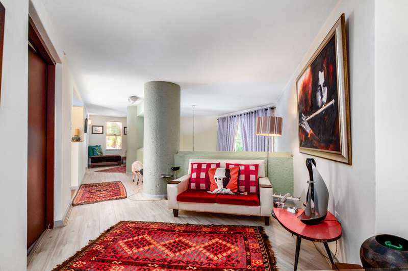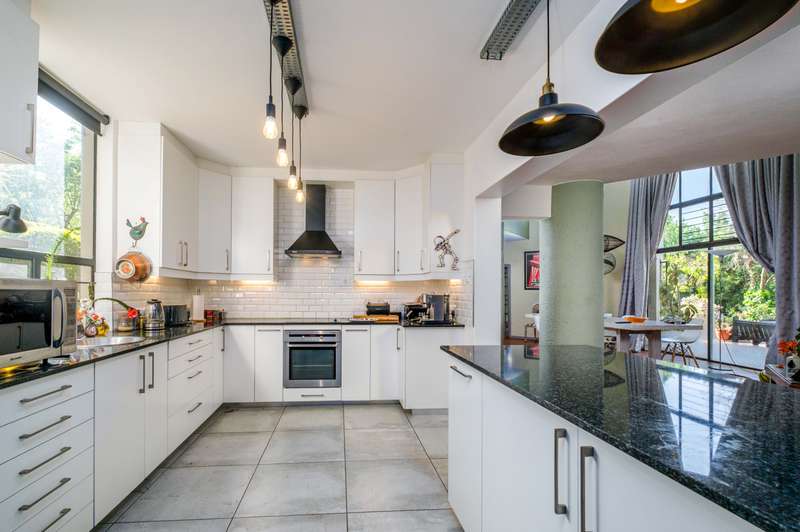 Extraordinary Architectural gem - 4 beds - near Randpark Primary This gorgeous home is a masterclass in design with striking angles and sweeping lines . Sophisticated and yet functional for the family that loves to entertain! Set in very private landscaped gardens with an expansive terrace for Al Fresco entertaining, overlooking the pool and jacuzzi. Open plan living with soaring double volume windows and feature pillars all opening onto the terrace and garden. Chef inspired kitchen with granite tops and a dedicated scullery/laundry flows to the living and dining areas - all opening on to the terrace. Upstairs to an angled walkway with seating nooks or pyjama lounge area are 4 bedrooms or 3 and a study...3 of the beds open with sliding doors looking over the garden. 2 Full bathrooms serve the upstairs with the main ensuite to a sunny, spacious main with its own seating/sitting area and separate dressing room. 4 Garage and a staff suite within a high boundary wall complete this oasis of style and grace - something extraordinary for those with an eye for design features!