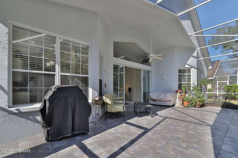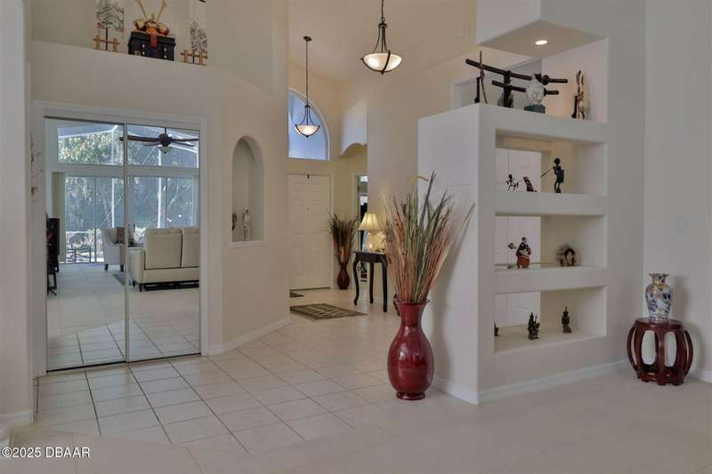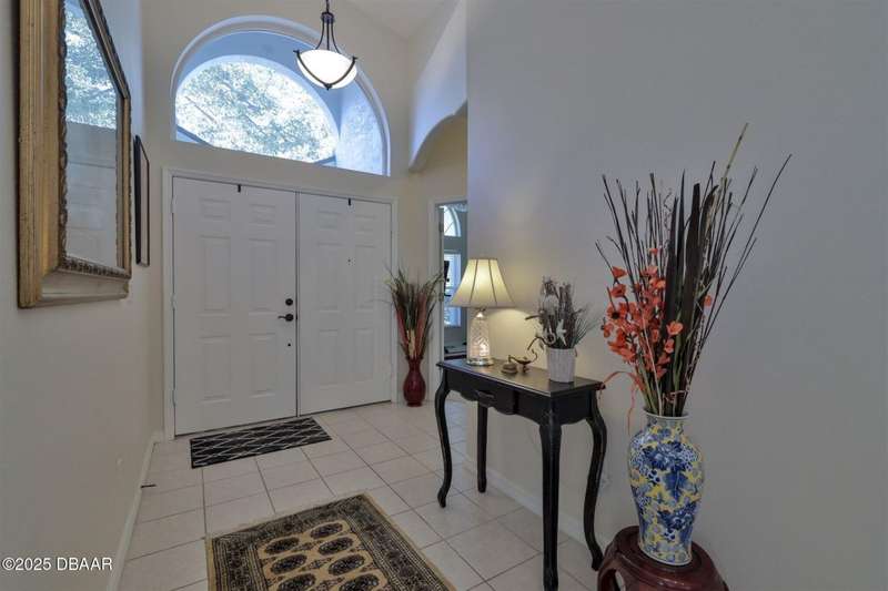 You couldn't ask for a better place to live than this sought-after community, where the scenic drive to Whisper Glen takes you through The Loop beneath a canopy of majestic oaks. Arrive at your destination and be greeted by stately double doors opening into a tiled entryway and a bright, spacious living room. Italian tile flows throughout, complementing the neutral color palette and natural light streaming through a wall of sliders and transom windows. The Chef's Kitchen has been beautifully updated with sleek gray-and-white granite counters, a deep single-basin sink, stainless steel appliances (2020), glass backsplash, under-cabinet lighting, and crisp white cabinetry. A breakfast bar and caf�© nook overlook the peaceful, tree-lined backyard.Your Owner's Retreat features a private bath with dual sinks, a walk-in shower, and a relaxing garden tub. The split-bedroom layout ensures privacy for visiting guests, while one guest room with double doors offers the perfect spot for visiting guests, while one guest room with double doors offers the perfect spot for a home office or TV room. Just off the kitchen, the formal dining room is ideal for family gatherings.Practicality meets convenience with an inside laundry area that accommodates front-load machines and offers built-in shelving. Car enthusiasts will love the oversized garage with abundant cabinetry, a walk-in attic with ample storage, and room for two full-size vehicles plus motorcycles, a golf cart, or other toys.Step outside to the huge screened lanai, the perfect place to savor your morning coffee while enjoying serene, wooded views. Additional highlights include a premium WKL shingle roof (2018), sprinkler system, and well-maintained landscaping by the Whisper Glen sub-association. (Refrigerator does not convey but a stainless steel refrigerator will be in the house.)Halifax Plantation is more than a neighborhoodit's a lifestyle. Enjoy golf, tennis, fitness facilities, a pro shop, clubhouse, and restaurant, all just a short walk away.