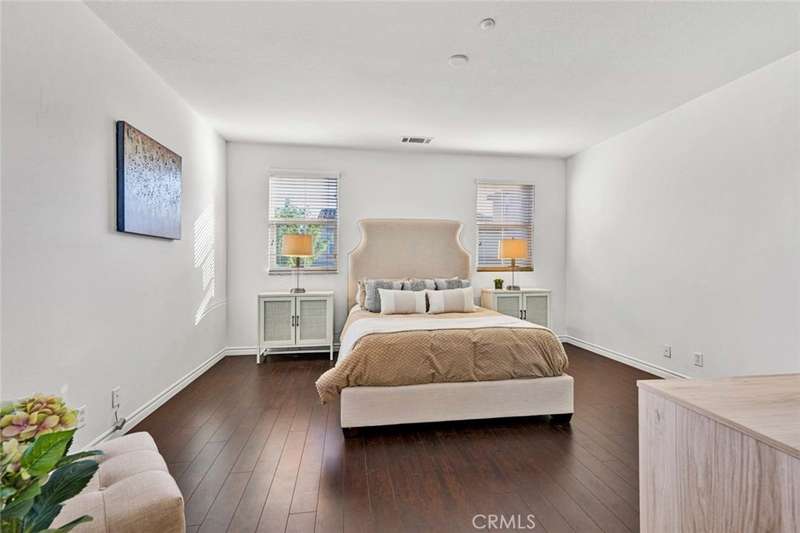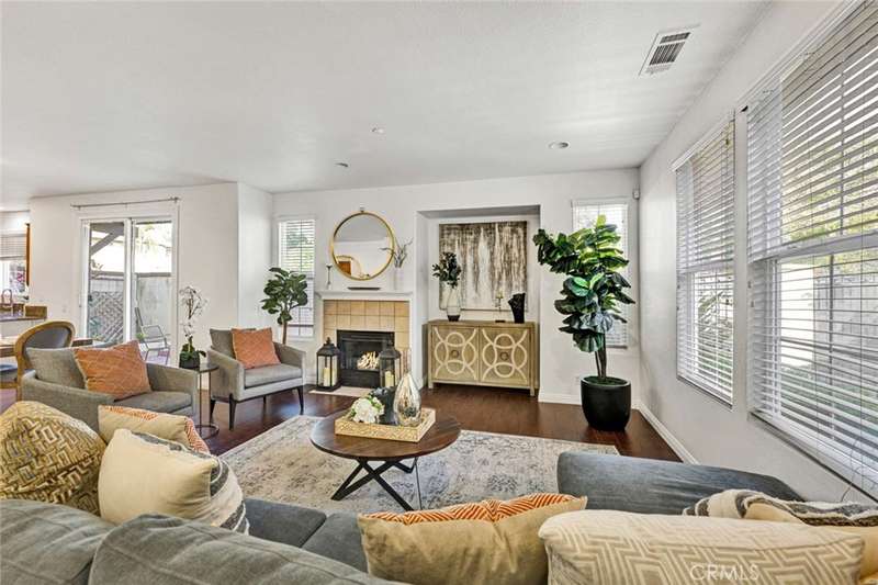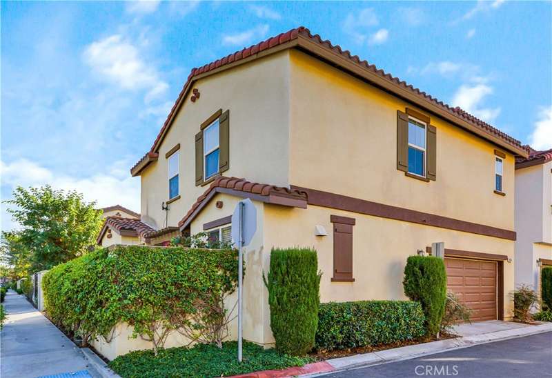 Quality-built by Brandywine Homes in 2008, this stunning two-story DETACHED residence offers 4 bedrooms, 3 baths, and nearly 2,000 square feet of modern luxury, ideally situated on a prime corner lot as one of only 39 homes in the exclusive community of Sienna at Renaissance Plaza featuring a charming children's playground, BBQ/picnic area, and tranquil walking paths through beautifully landscaped grounds. Designed with a desirable open-concept floorplan, it boasts a downstairs bedroom and full bath, a light-filled great room with tile fireplace, media niche, a spacious dining area perfect for family gatherings, and a gorgeous gourmet kitchen with granite countertops, stainless steel appliances, rich wood cabinetry with large pantry, and a breakfast bar, all opening to a lovely private patio. Additional highlights include central A/C, wide-plank laminate flooring, volume ceilings, dual pane windows, custom blinds, recessed lighting, tall raised-panel interior doors, tall baseboards, tankless water heater, fire sprinklers, water softener, whole-house water filtration system, and abundant storage space. Upstairs you'll find a versatile loft ideal for a tech station, office, or retreat, a convenient laundry room, and a luxurious primary suite with large walk-in closet, privacy toilet, dual sinks, soaking tub, and separate walk-in shower, while two additional bedrooms with raised panel closet doors share a jack-and-jill bathroom with dual sinks and a tub/shower combo. Completing this exceptional home is direct access to a two-car garage and a central location within walking distance to both the elementary and high school, close to shopping, dining, and freeway access, and only 3 miles to Knott's Berry Farm and 4 miles to Disneyland--truly a rare opportunity you won't want to miss!