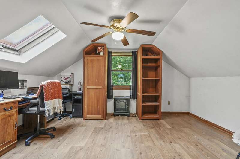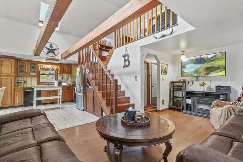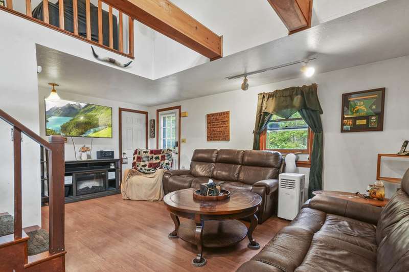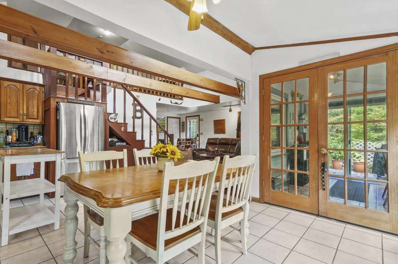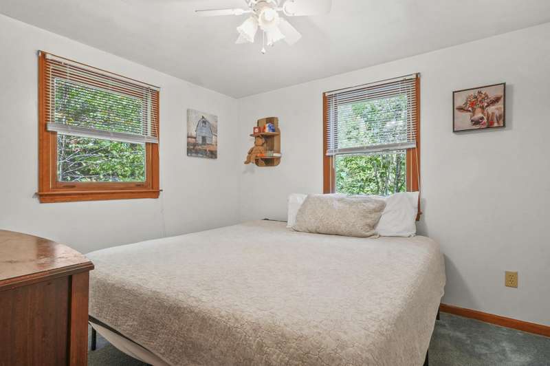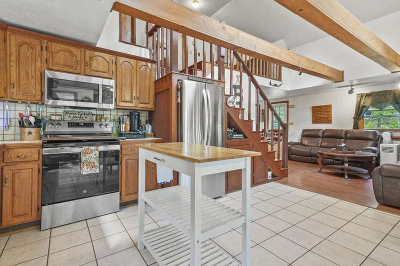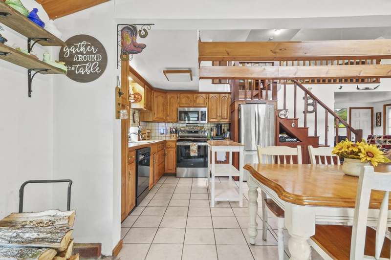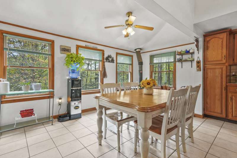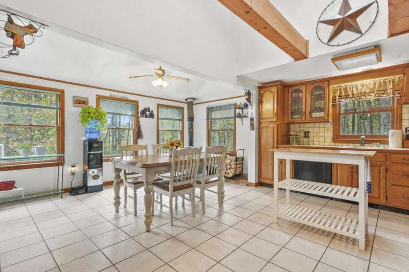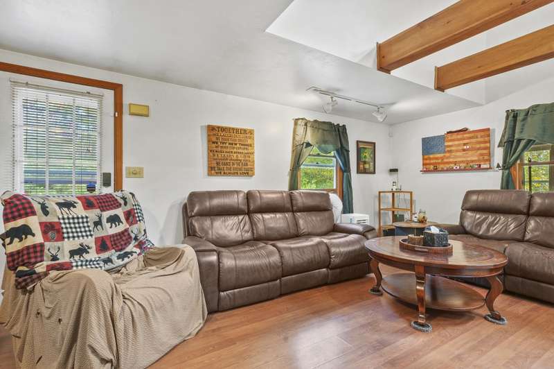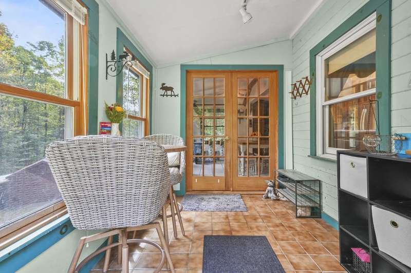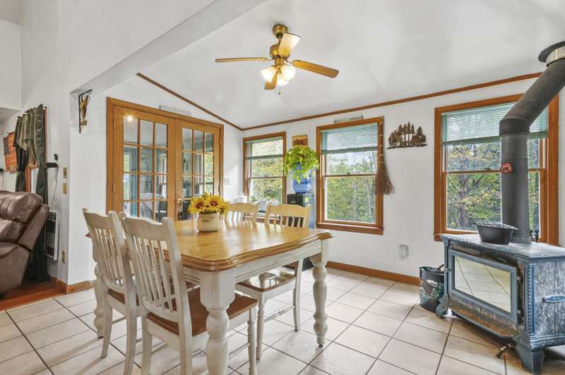 Nature lovers, your retreat awaits! Nestled on over an acre of wooded privacy, this 3-bedroom, 1-bath raised ranch blends peace, space, and postcard-worthy views of Streeter Mountain. Step inside to an open floor plan featuring a vaulted, beamed-ceiling living room. The sun-filled kitchen boasts brand-new stainless steel appliances and flows seamlessly to the dining area anchored by a cozy wood stove. French doors open to a four-season sunroom and deck where you’ll feel completely immersed in nature. Upstairs, a loft and third bedroom provide flexible living or work-from-home space. The main level offers two spacious bedrooms and a full bath. A two-car garage adds convenience to this serene escape. Whether sipping morning coffee on the deck or watching the seasons change across the treetops, this home offers the best of mountain living with everyday comfort.