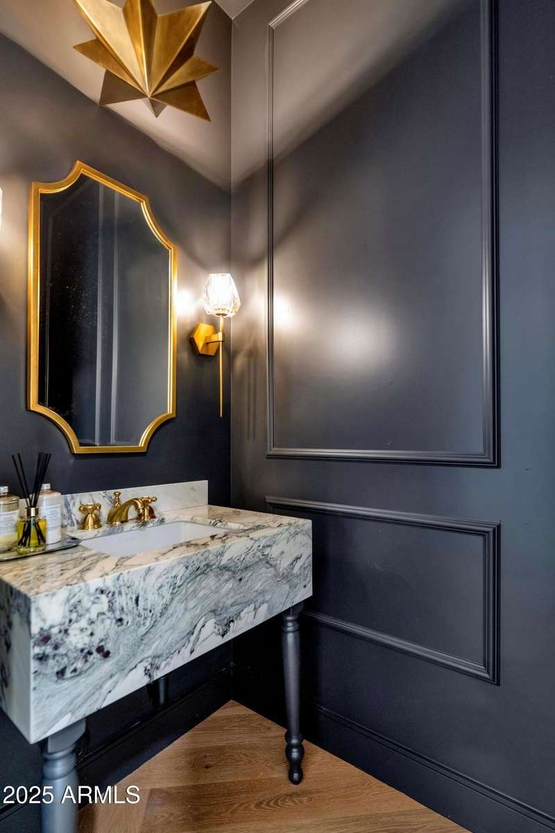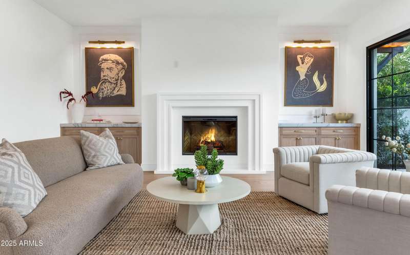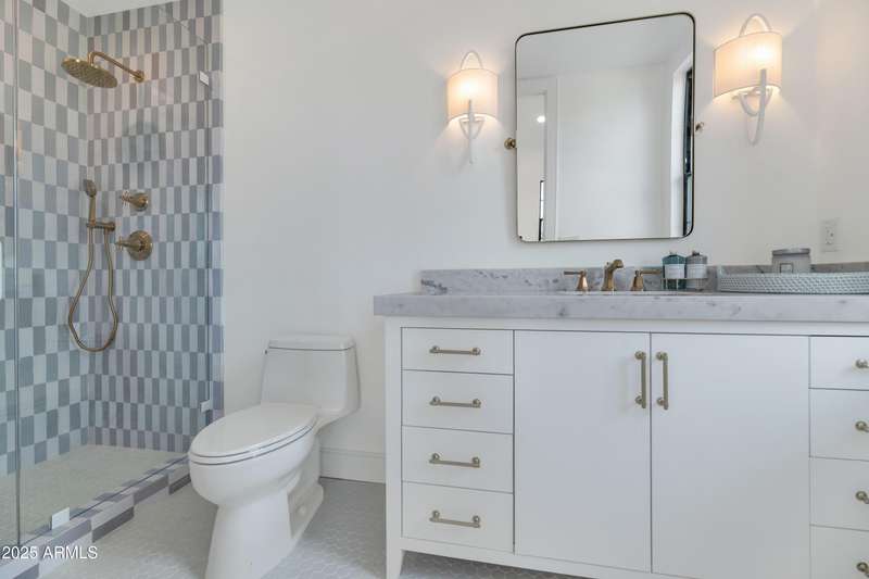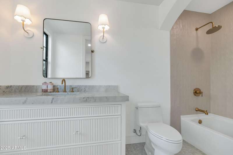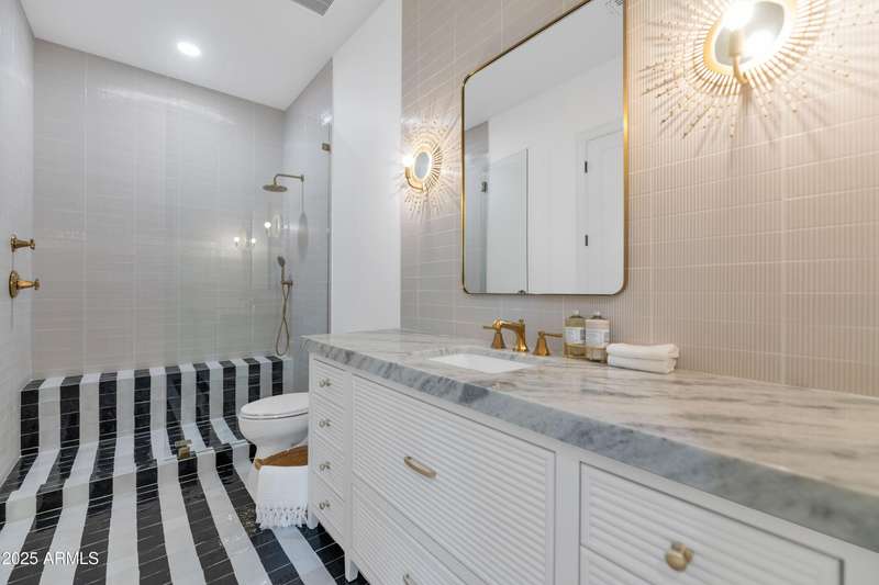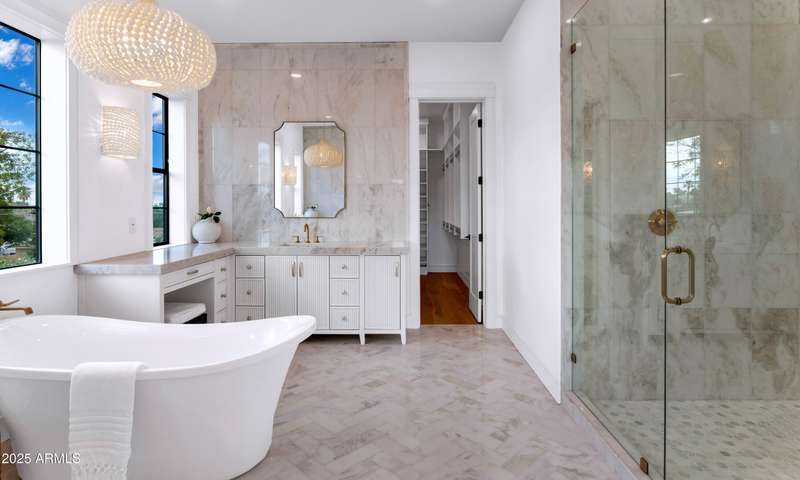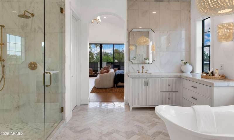 Experience elevated Arcadia living with this stunning new build in the Hopi school district. Spanning 4,557 sq ft, this thoughtfully designed home offers 5 bedrooms, 5.5 bathrooms, a formal dining area and an upstairs flex space, all showcasing breathtaking Camelback Mountain views. The home features a chef's dream kitchen complete with dual oversized islands & Thermador appliances. A walk-through butler's pantry offers direct access to the built-in outdoor grill, perfect for entertaining. The luxurious primary suite boasts Camelback Mountain views and a spa-like marble bathroom. All guest bedrooms are ensuite, with two featuring unique loft spaces ideal for kids or additional play areas. Step outside to a fully landscaped backyard oasis, complete with lush ficus, a new pool, and room to relax or entertain. Curb appeal shines with a cobblestone driveway, custom wood garage door, brick accents, and black-and-white checkered flooring at the outdoor entry.