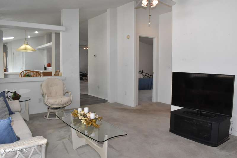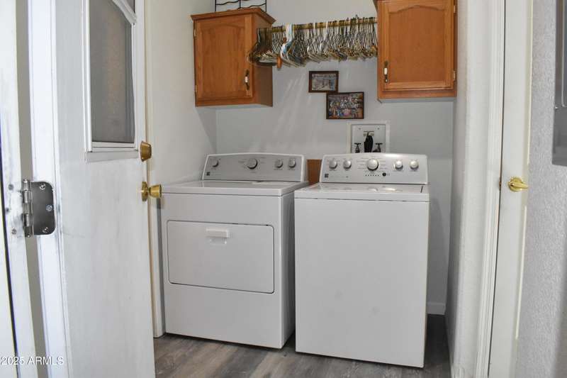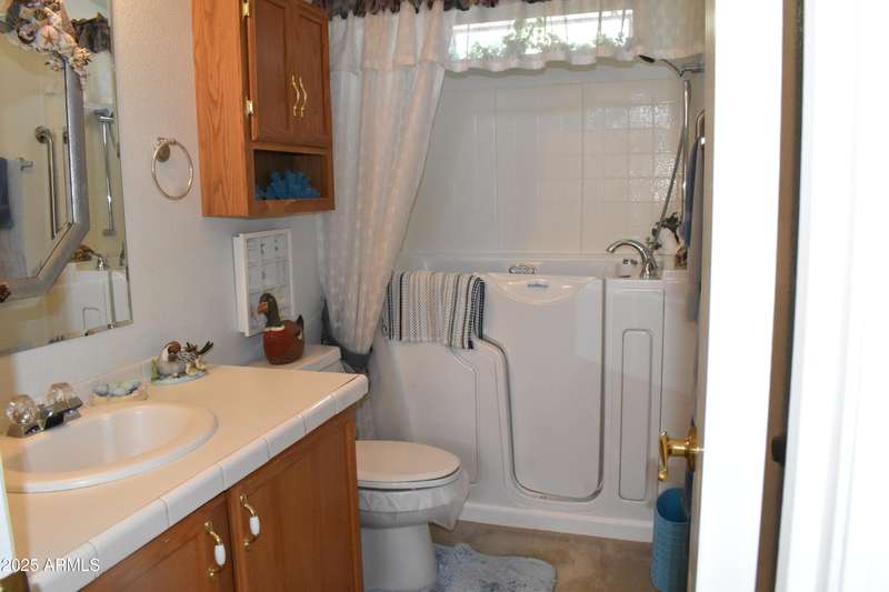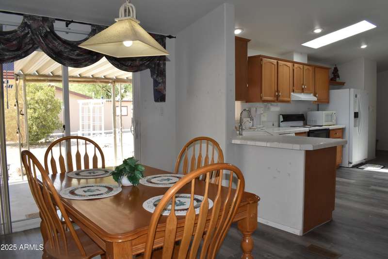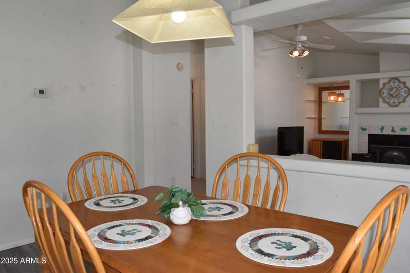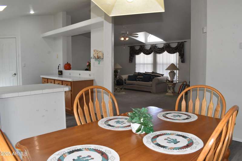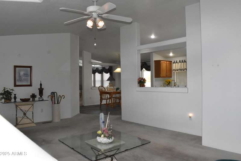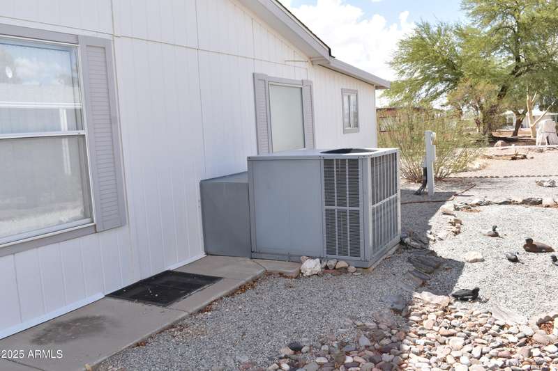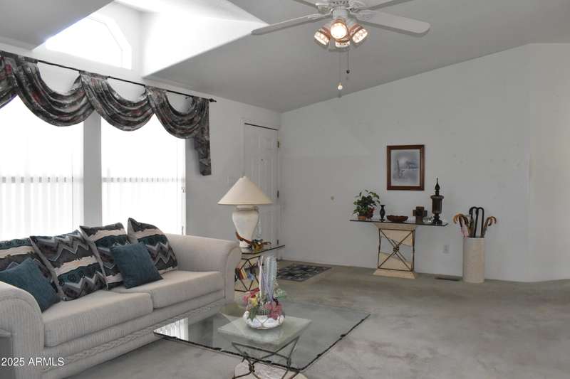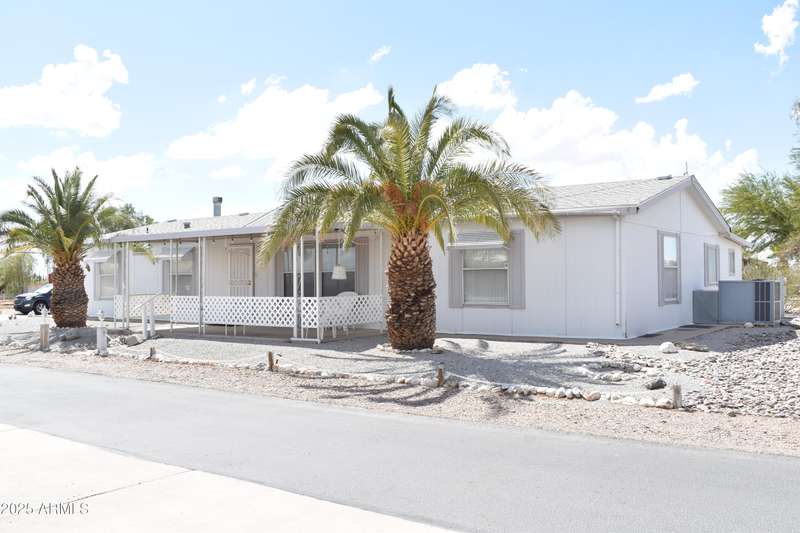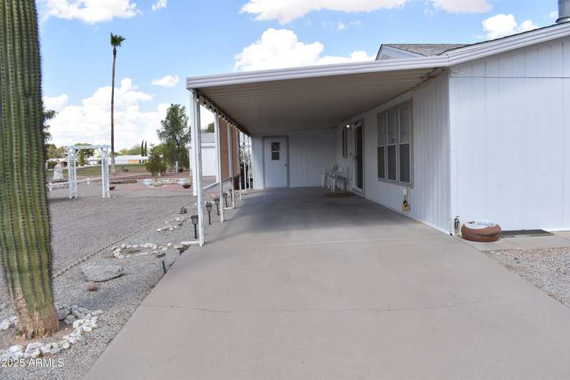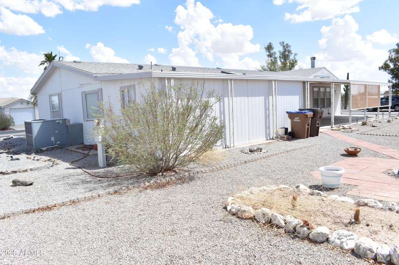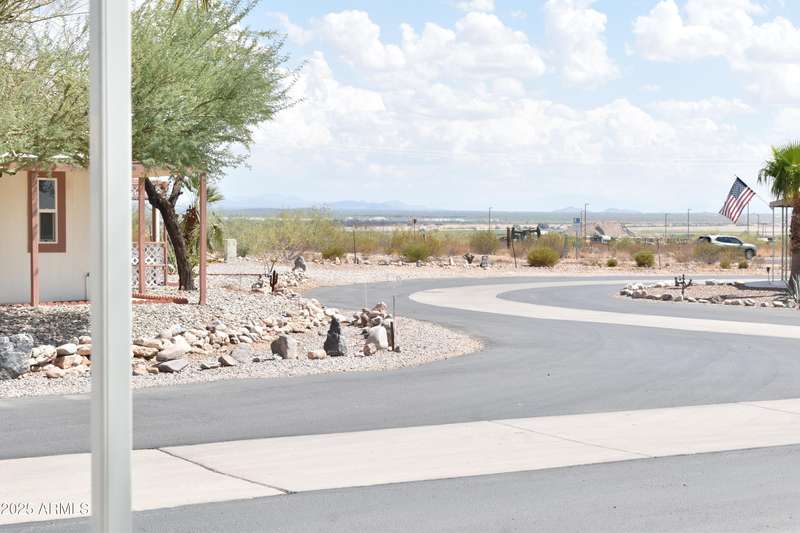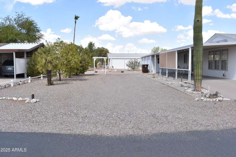 This beautiful 3-bed, 2-bath home on 1.5 lots, with views of 3 of the 9 hole golf course in Florence Gardens, a 55+ community offers, 1,904 sq. ft. with vaulted ceilings, natural light, and a cozy fireplace with built-ins. The kitchen features laminate counters and ample cabinet space, opening to the dining area and backyard. The primary suite includes dual sinks, a soaking tub, and walk-in shower, while the second bath offers a walk-in tub (2017). Low-maintenance landscaping with mature palms and a wide front porch add curb appeal. There is ample covered parking for your vehicles and a spacious 2 room shed/office. HOA amenities include multiple pools and hot tubs, pickleball, as well as a variety of indoor activities, and weekly events. Located along Hwy 79 between Phoenix and Tucson.