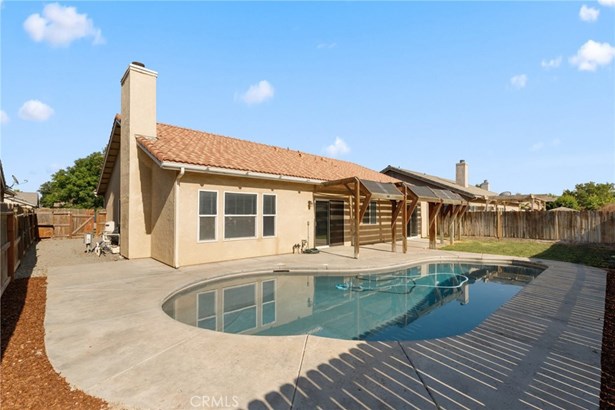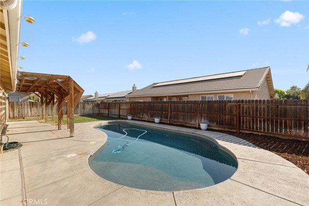 This beautifully maintained ranch-style home offers the perfect blend of comfort and convenience, featuring a 3-car garage, an in-ground pool, 4 bedrooms, and 2 full bathrooms. Inside, enjoy brand-new flooring and carpet (installed June 1, 2025). New paint uniform throughout the house. The kitchen boasts granite countertops, providing both style and durability. Additional upgrades: whole house fan, reverse osmosis in kitchen, intercom system with radio, built in hutch in the kitchen, fireplace mantle, and hard-wired security system. Master bedroom has a sliding glass door that opens up to the backyard. Located near Naval Air Station Lemoore, Lemoore Golf Course, Surf Ranch Sports Complex, and PW Engvall Elementary School, this home offers easy access to recreation, top-rated schools, and local amenities. Nice, quiet neighborhood close to the elementary school (P.W. Engvall Elementary).