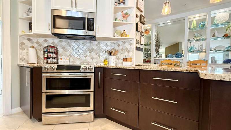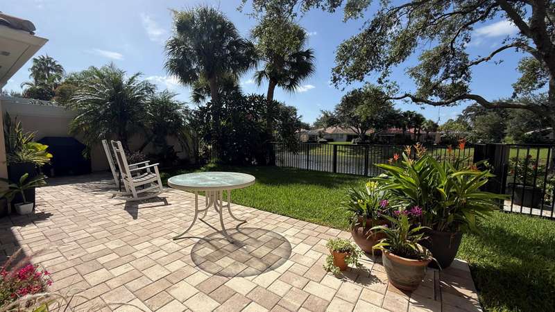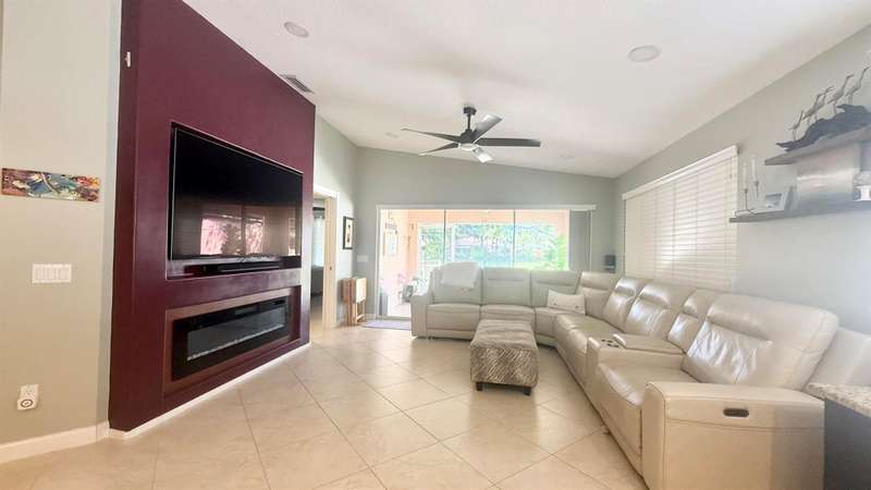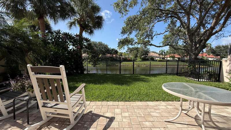 Welcome to this beautifully maintained 2 bedroom, 2 bathroom Capri model villa offering a serene lake view and thoughtful upgrades throughout. The home boasts an open floor plan with vaulted ceilings in the great room, a built-in entertainment center, and 18'' ceramic tile flooring throughout.The renovated kitchen features stainless steel appliances, abundant storage, and modern finishes. Enjoy outdoor living with a screened lanai enhanced by panoramic screening, a paved deck, and a fenced garden with lush landscaping.The spacious principal suite includes a large walk-in closet and a bath with dual sinks and a walk-in shower. The guest suite, positioned for privacy on the opposite side of the home, also offers a private bath and walk-in closet.