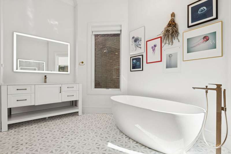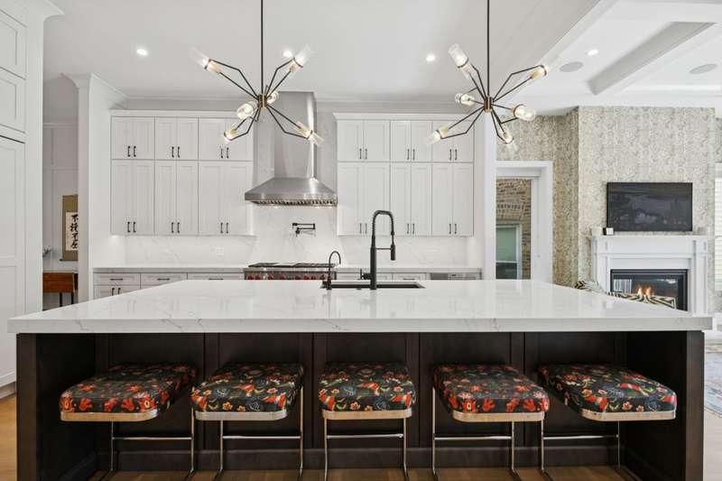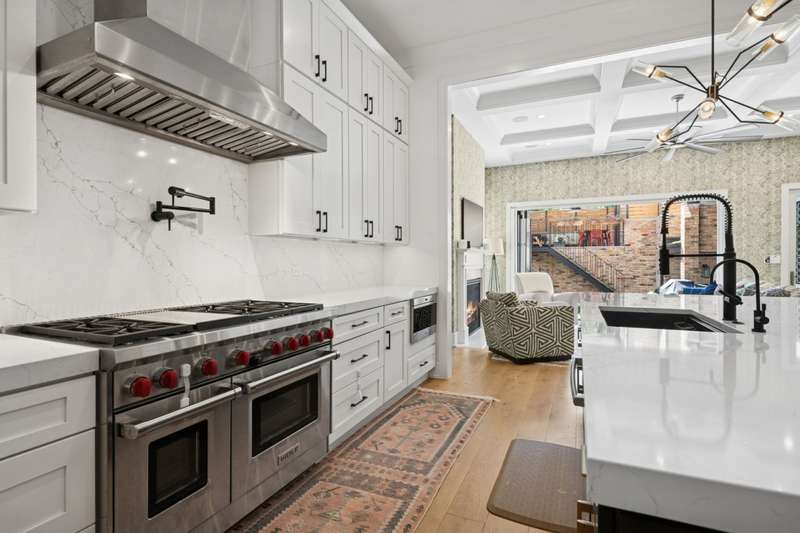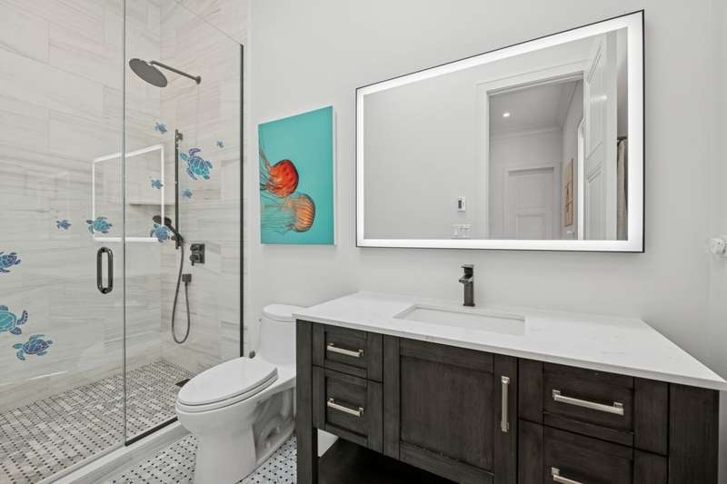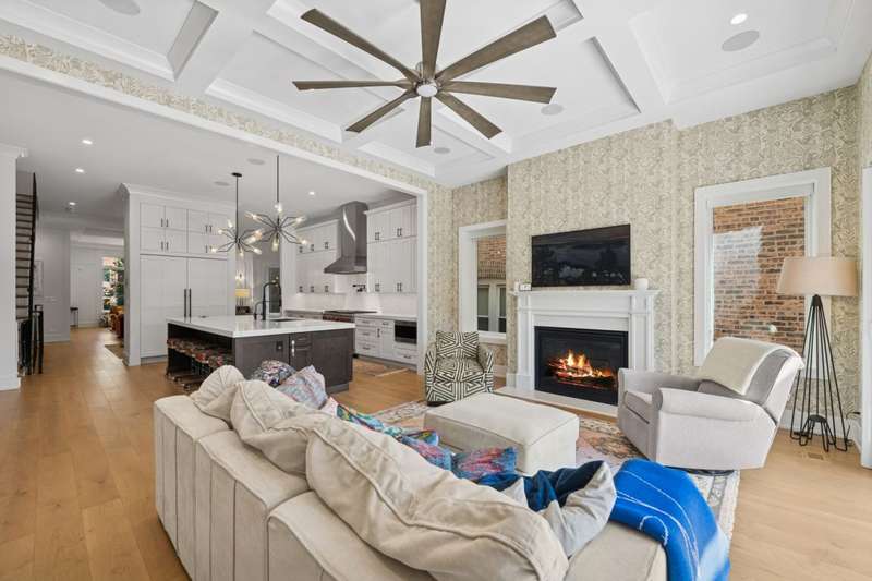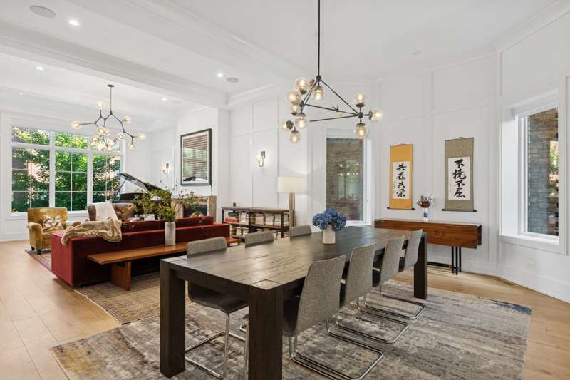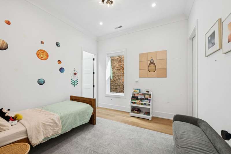 One of a kind, masterfully crafted, stand out 5 bedroom residence on one of the most coveted streets in the main heart of Andersonville. A half block east of Clark Street and steps to the pulse of the neighborhood. Another exquisite Tylo Development Partners LLC single family features 3 bedrooms on one floor plus a guest or in-law suite on lower level, 4.1 decadent bathrooms. This combination of classic contemporary style, 11' ceilings, incredible natural light sources, 2500 square feet of private outdoor space lends itself both to an entertainer's dream home and a very family friendly experience to raise children with bedrooms on one floor and conducive layout with an open kitchen concept and adjacent play spaces, easy access to first level backyard with some grass set on a 30' wide lot. Impressive, distinct and all masonry and limestone front, double stacked, oversized bay windows with motorized shades, all restored Chicago brick sides walls. Crisp color palette for fine art display and beautiful and fun wallpaper sprinkled throughout the rooms of this home. Ring System security with locked front gate, Smart Home System. Foyer greets, gracious formal living room with fireplace outfit with heavy limestone mantle and hearth. First floor powder room. Classic contemporary wall wainscoting, coffered ceilings, all 7 wide plank, real tongue and groove hardwood floors throughout, sumptuous 5,400 square feet of interior living space. Open kitchen concept with separate and designated dining room. Gourmet kitchen featuring massive 14' island, built in sink, comfortable seating for five, mitered quartz counters in white with grey veining, slab backsplash, Subzero, high end and custom all wood cabinetry dressed in white and walnut, separate pantry, black gold hardware. Six burner, high output Wolf range with double oven, vented culinary hood, stainless steel appliance package. Family room continues the kitchen space with fireplace and extra cabinetry including dry bar, wine and beverage coolers, windows on on three sides and collapsable panel of glass accordion style with a screen leading out to first floor outdoor space with pavers and grass, 2.5 car all brick garage with EV charger, epoxy floor, roof top deck above. Cohesive custom light fixtures, chandeliers, ceiling fans, romantic iron patterned staircase, wood treads, laundry room with sink, folding space, side by side washer and dyer, cabinetry in the middle of the second floor. Ensuite bathrooms. The sumptuous primary bedroom includes two walk-in closets, a shoe closet, crown moldings and tall, detailed baseboards throughout, fireplace. Primary bathroom features exquisite marble patterned floor, separate, oversized vanities with quartz counters, free standing soaking tub, separate shower with rain, toilet room, and window for a natural light source. Four additional, great sized bedrooms and three additional bathrooms dressed in finest quartz and marbler stone. Full floor plate lower level offers home