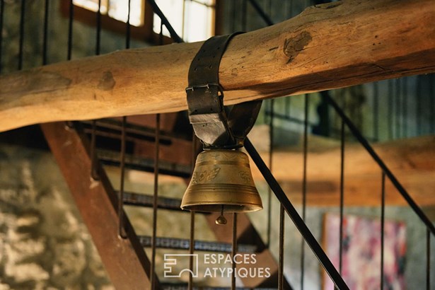 The main farmhouse, with a living area of approximately 300m2, has been renovated with quality materials and in a modern brutalist style. Metal and concrete contrast with the wood of the omnipresent beams.