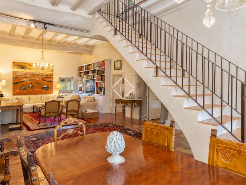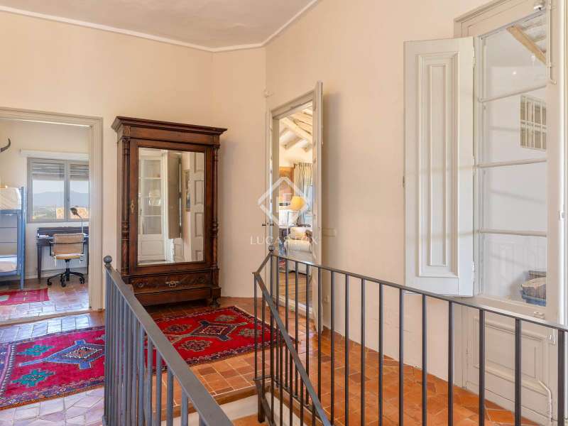 Situated on the southern edge of a peaceful village in the Alt Empordà, this exceptional country estate enjoys an elevated position with sweeping views over the Gulf of Roses and the surrounding countryside. Set on a generous plot of approximately 6,500 m², the property offers a rare combination of privacy, charm, and architectural significance, perfectly integrated into the natural beauty of the Empordà landscape. Its location strikes a rare balance between serenity and accessibility, just 15 minutes from the golden beaches of the Costa Brava, close to the AVE high-speed train in Figueres, and within comfortable reach of Girona airport. This is an exceptional opportunity for those seeking a refined rural escape. Steeped in history, the estate has evolved over generations into a stunning and functional residence that retains its original charm. The property is an architectural composition that includes the main house, a three-storey tower, a fully refurbished hayloft, and original stables, all arranged around a traditional stone-walled courtyard. The grounds are landscaped with Mediterranean flora and a large newly built swimming pool that blends harmoniously with the surroundings. Entry to the home flows through the hayloft, now transformed into a stylish, garden-facing living space, leading to the main house, which faces south for natural light. Inside, the layout is both generous and practical. The ground floor opens with an inviting entrance hall, followed by a guest bedroom, a bathroom, and a kitchen designed for both daily life, featuring a fireplace-warmed dining area, an open cooking zone, and a separate pantry with laundry facilities. Authentic architectural elements, barrel-vaulted ceilings, handcrafted woodwork, and stone seating nooks, preserve the soul of the building. Upstairs, natural light pours into the formal dining room through restored windows with original window seats, while the adjacent living room offers high ceilings and plenty of space to relax. Two elegant bedrooms with en-suite bathrooms complete this floor. The top level is designed for ultimate comfort, featuring a cosy lounge with a fireplace and air conditioning, access to a terrace with panoramic sea views, and two additional en-suite bedrooms, one with views of the Pyrenees and the other with garden and sea outlooks. Additional features include a garage converted from a stable (retaining its antique manger), a dedicated technical workshop, oil-fired central heating, fibre optic internet, and a fully legal private well with automated irrigation systems. For those drawn to space, authenticity, and slow living, this is an idyllic haven. Whether you envision it as a full-time family home or a creative countryside escape, this estate offers a rare lifestyle opportunity in one of Catalonia’s most sought-after natural settings. Please contact us for further information.