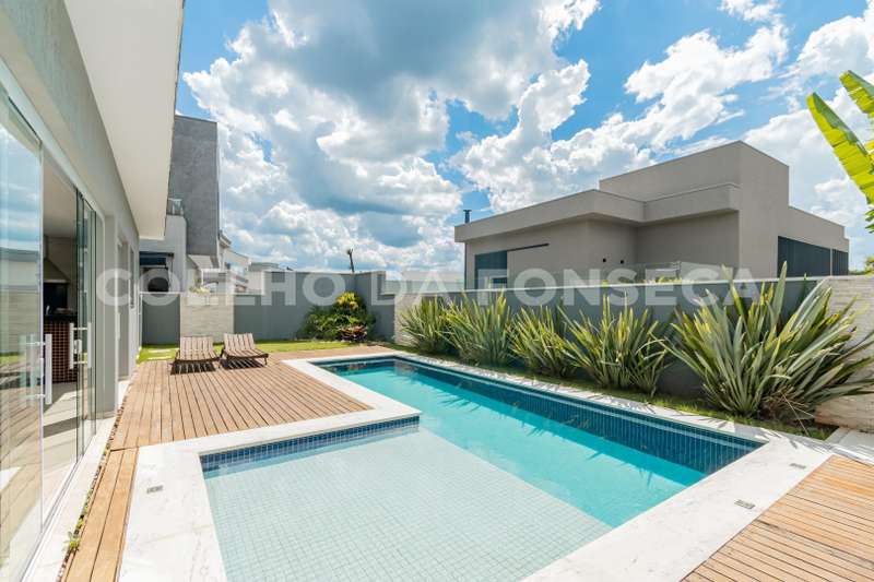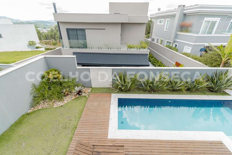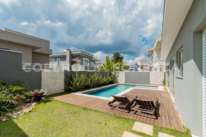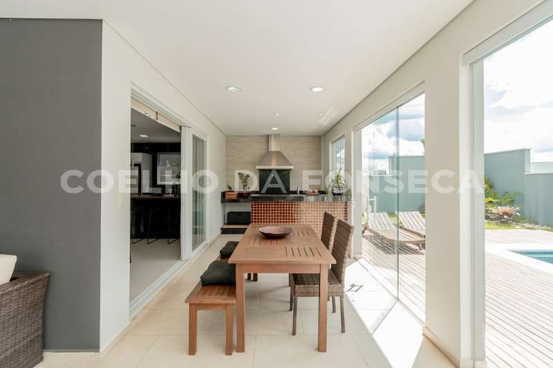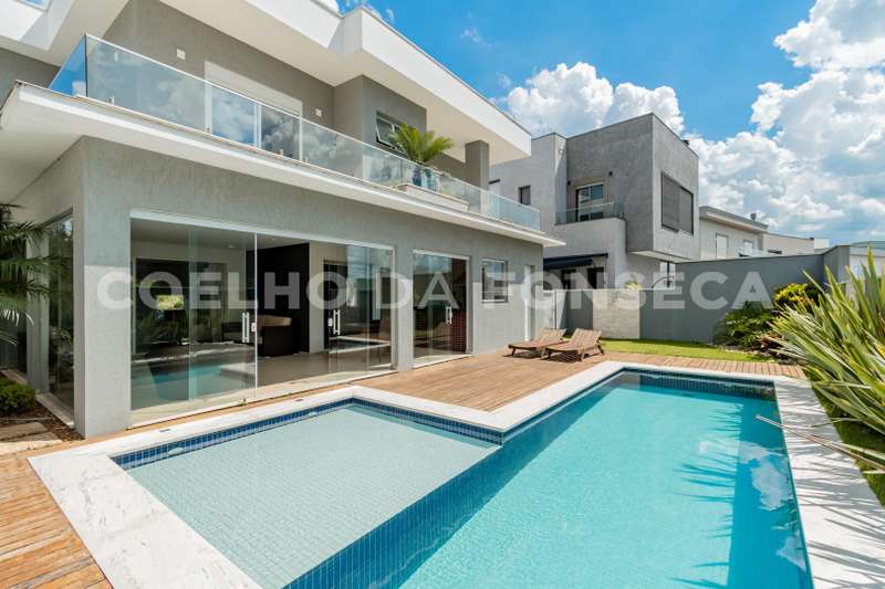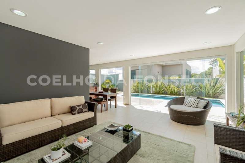Casa no condomínio BURLE MARX, com 366m² área construída, 4 dormitório(s), 3 suíte(s), 2 vaga(s), 4 banheiro(s), piscina, escritório, mobiliado (a), ar condicionado, dep. de empregados, varanda, aquecedor solar, pé direito duplo.