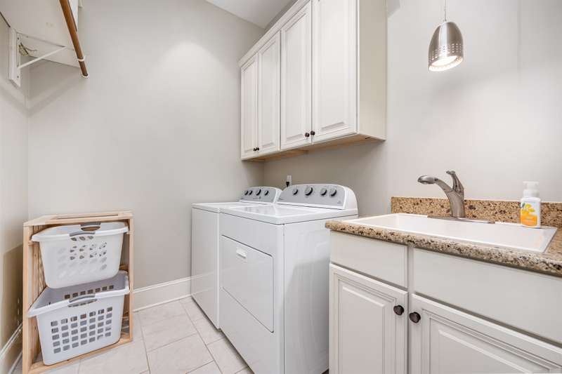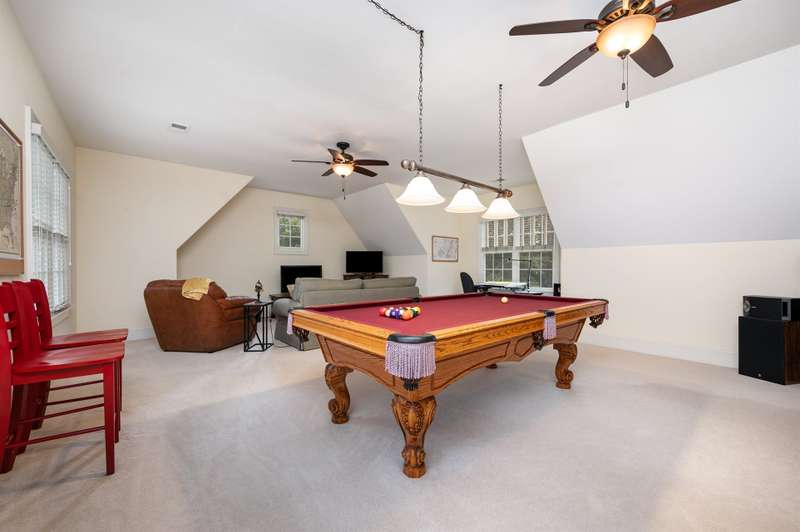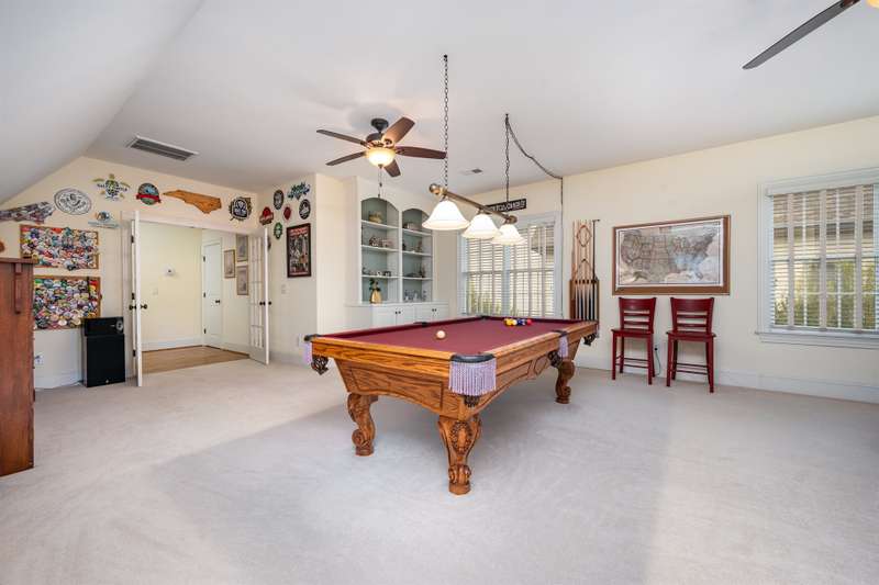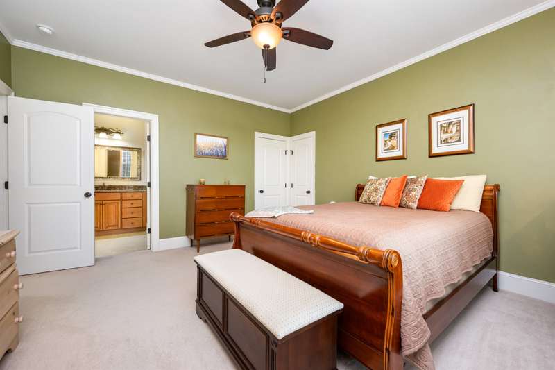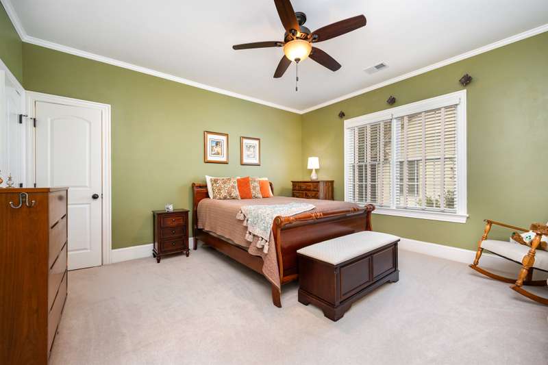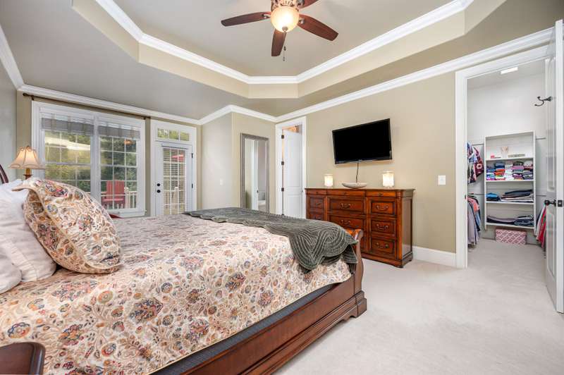 This beautifully crafted 4-bedroom, 4-bathroom home offers the perfect blend of luxury, comfort, and function. The chef's kitchen is a culinary dream, boasting a double oven, gas range, stainless steel appliances, rich cherry wood cabinetry, and a large granite island that flows seamlessly into the open living area?''ideal for entertaining.The main floor features a spacious primary suite with a spa-like ensuite bath and walk-in closet, plus a versatile second bedroom perfect for an office, nursery, or in-law suite. Upstairs, you'll find two generously sized guest bedrooms, each with its own full bath and a large bonus room, perfect for a game room, home gym, or media space. Don't miss the two large finished storage spaces that are ready for your holiday decor!Enjoy peaceful outdoor living with a screened-in porch, expansive deck, and a private backyard with wooded views and lush landscaping. Located just a short jaunt from the 5th tee box, this home combines serenity with resort-style amenities, including a pool, clubhouse, fitness center, walking trails, playground, and a Davis Love III signature golf course.