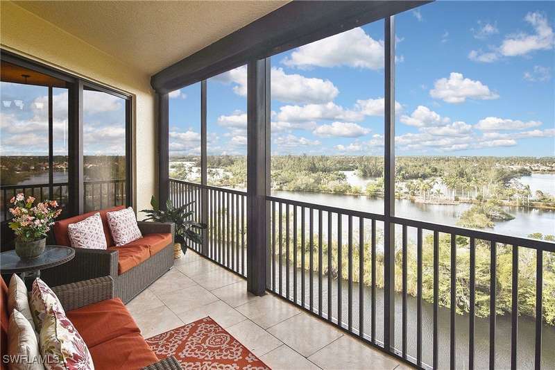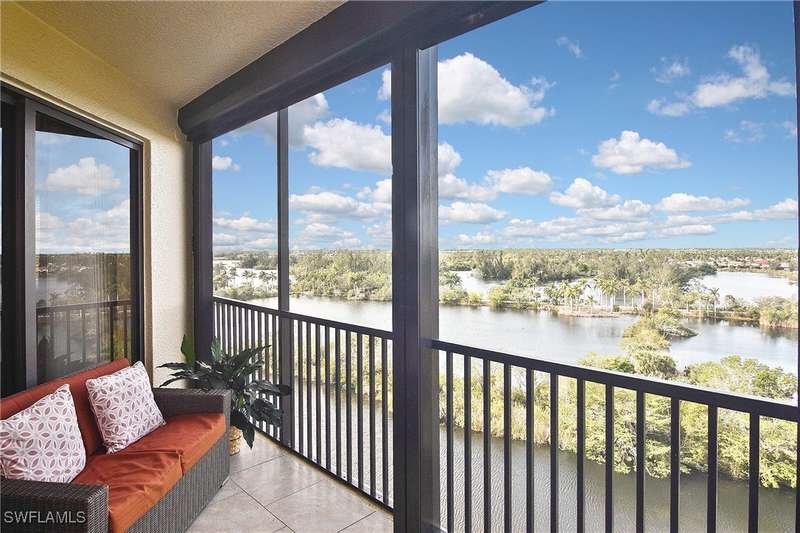Welcome to this stunning condo at Riva Del Lago, Experience the luxury and carefree living from the 9th floor end unit over looking panoramic views of Lakes Park. Step inside the well designed open layout featuring expansive floor to ceiling sliding glass doors, engulfing the living space with the natural light and captivating the scenery. This 3 bedroom. 3 bathroom with almost 1900 sq ft of living. Crown Molding, A/C 2021, impact windows and automatic hurricane screen on lanai for added protection. Plenty of space to entertain and enjoy the breathtaking sunsets. This condo is move in ready and waiting for you to start living the Florida lifestyle today. Riva Del Lago's beautiful amenities include resort style pool and spa, billiards and fitness center, business center, library, tennis court, private access to Lakes Park.