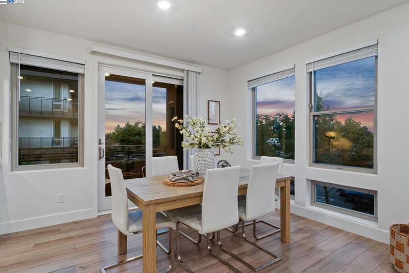 Welcome to this exceptional multi-story corner condo NORTH EAST Facing Front Door. The main level presents an inviting open living concept, flooded w/natural light from an abundance of windows that also offer stunning views. Enjoy peace & quiet thanks to the triple-paned windows designed for superior sound reduction. Contemporary kitchen, a chef's delight featuring sleek quartz countertops, elegant white shaker cabinets, a gas range, stainless steel appliances & a walk-in pantry. Spacious primary suite w/a walk-in closet, a double vanity & a large walk-in shower. 2bed/1ba on the same floor with washer/dryer in closet. Attached two-car garage w/driveway parking ensures easy access. Step out onto your private balcony to enjoy the views. Boulevard Rec Center, featuring a heated pool, meeting rooms, workout areas, a game room & outdoor lounges. Commuting is a breeze with easy access to major highways & just a 5-minute walk to BART. This prime location places you minutes from everyday essentials: groceries, banks, farmer's markets, diverse shopping options, charming cafes, exquisite dining, and entertainment at the local theater. Top-rated schools, beautiful parks, and a variety of recreational facilities are also within easy reach. OPEN HOUSE SAT/SUN 1-4PM.