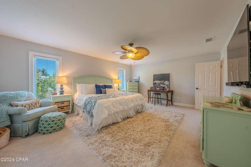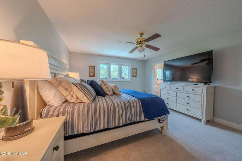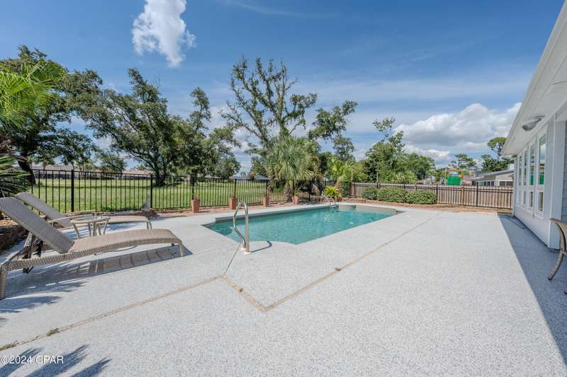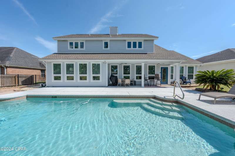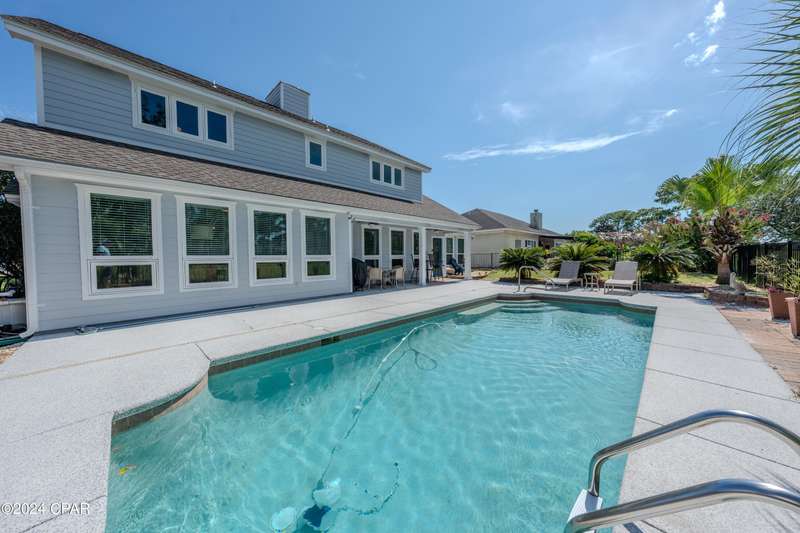 This stunning Bay Point pool home offers a blend of recent updates and ample living space. Spanning 3,154 sqft, the home boasts a main-level master bedroom for convenience. The large living room, dining room, and office all overlook the serene pool area. The kitchen has been completely renovated with brand new cabinets, quartz countertops, and stainless steel appliances.Freshly painted both inside and outside, including ceiling smoothed, the house feels brand new. The upper level features two spacious bedrooms that share a Jack and Jill bathroom, providing privacy and functionality. Recent upgrades include new windows and a roof installed within the past five years.The oversized double car garage is perfect for not only parking but also offers additional room for a workshop. Plus, the furniture is negotiable, making this home move-in ready.Bay Point is a waterfront community that is gated with roving security. There is deep water marina Point South, as well as a Nicholas golf course. The community also has a resort, restaurants, and tennis.Don't miss out on this beautiful family home that perfectly combines modern updates with comfortable living spaces!