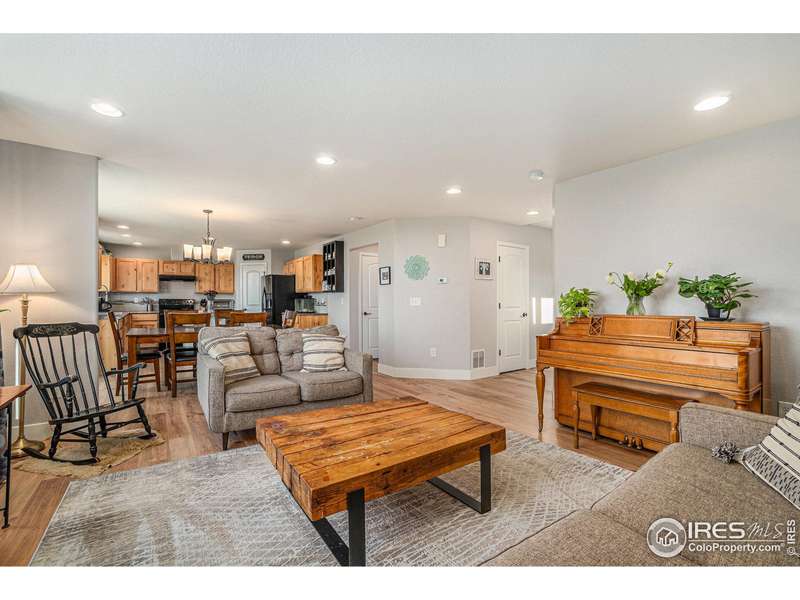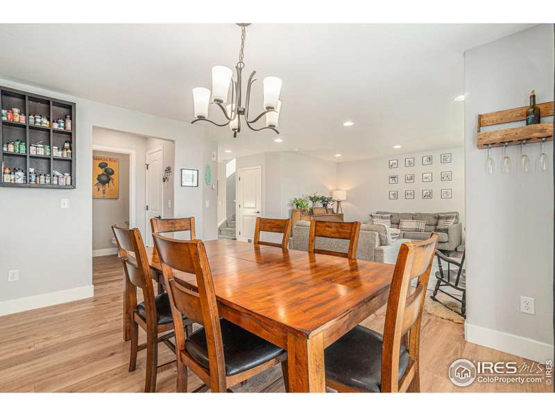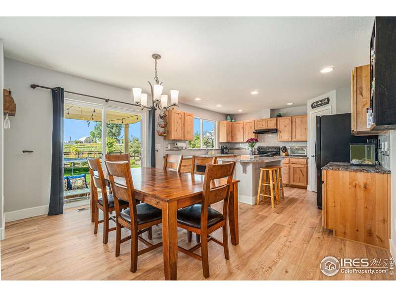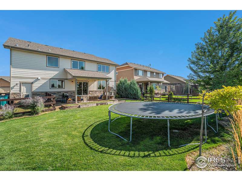 Discover your perfect Colorado lifestyle in this beautifully updated 5-bedroom home tucked in a quiet cul-de-sac of the sought-after Pelican Farms community. With brand new LVT, fresh paint and new carpet, every space feels fresh, open and welcoming. Upstairs features four bedrooms, two full baths, laundry, and a dedicated office. The finished basement adds a fifth bedroom, full bath, storage, and a cozy family room with a gas fireplace - ideal for guests or game nights. Enjoy peaceful mornings on the covered porch swing and evenings in the professionally landscaped backyard that opens to trails and seasonal farmland you can harvest. The oversized 2-car garage includes golf cart parking, a workshop area and a Level 2 EV charger. Access to Raindance River Resort, Hoedown Hill, golf clubs, and four private lakes with beaches for swimming, paddleboarding, fishing and more (additional fees may apply). Walk, bike, or cruise by golf cart to nearby parks, orchards, and trails - this is Northern Colorado living at its best.