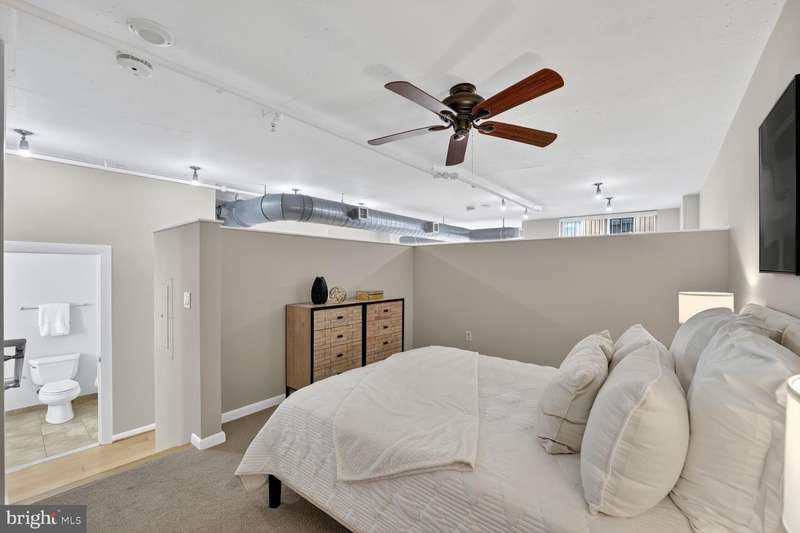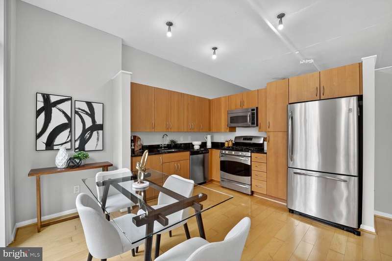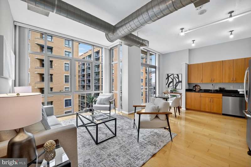 Madrigal Lofts Modern Loft Living in the Heart of Mount Vernon Triangle! Step into industrial-chic city living at its best with this stunning 1-bedroom, 1-bath loft condo at Madrigal Lofts. With 700 square feet of open space, soaring 10' concrete ceilings, and dramatic floor-to-ceiling windows, this home perfectly balances sleek style with everyday comfort. The sun-splashed living area features gleaming hardwood floors, a Juliet balcony, and flexible space for dining, lounging, or entertaining. The chef's kitchen is a showstopper with granite countertops, glass-tile backsplash, stylish wood cabinetry, and a full suite of stainless steel appliances-including a 5-burner gas range and large fridge. Upstairs, the lofted bedroom captures the true essence of urban living, complemented by a modern bath with a granite vanity, tiled shower/tub, and Kohler finishes. Convenience is key with in-unit laundry, one garage parking space, and two storage units that convey. Madrigal Lofts offers every amenity you could want: 24/7 concierge, a stylish lobby lounge, fitness center, and a rooftop deck with sweeping Capitol views and gas grills-your perfect weekend hangout. Located in the dynamic Mount Vernon Triangle, you'll be surrounded by top dining, nightlife, and entertainment in Penn Quarter, Chinatown, and NOMA. Two nearby Metro stations and quick access to 395 put the entire city at your fingertips. This is more than a condo-it's a lifestyle. Bold, modern, connected. Exactly what city living should feel like.