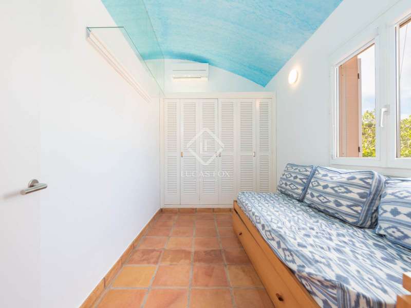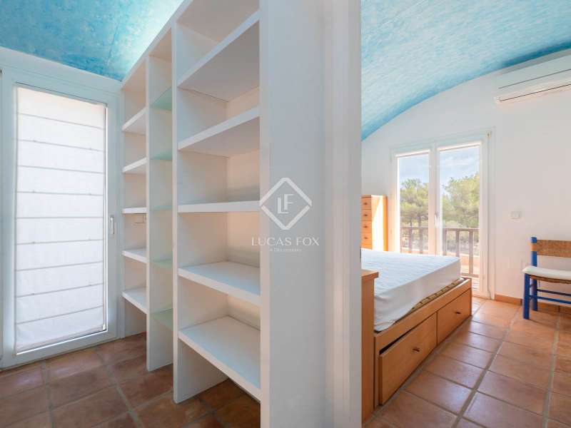Lucas Fox presents this 218 m² house, located in Sa Venda de Es Monestir, near the cliff, on a rustic building enclosed by ancient dry-stone walls. La Finca consists of three areas: a pine and juniper forest, a middle area with olive and fruit trees, and the main entrance area with several Formentera fig trees bearing fruit and a garden area with typical local plants. From the house you can enjoy fantastic views of the sea, the fields of La Mola and the forest, as well as beautiful sunsets. The house is spread over three floors. On the ground floor, there is a large entrance porch, four double bedrooms with built-in wardrobes, two bathrooms, a fully equipped kitchen open to the dining room , and a large, double-height living room, 6 meters high. From the living room , you can access the upper floor , which features a balcony-like space, a library, and the main bedroom with an en-suite bathroom with a built-in bathtub and access to the balcony with sea views. All the ceilings in the house are Catalan vaulting ceilings, approximately 3.5 meters high. The balcony provides access to the covered terraces. On the lower ground floor, we find the garage with capacity for two cars, the laundry area with two small Roca sinks, a washing machine and a clothesline, as well as several storage cabinets and a large open area. On the main façade there is a large porch and on the rear façade there is a large terrace covered with a pergola made of material resistant to the weather and climate of the island and an exterior shower. In the fig tree area there is also a wooden and bamboo shed, capable of accommodating two cars. The entire house is air-conditioned with heat pumps, and in the living room, in addition to the heat pump, there is a Nordic wood-burning stove. It is built with quality materials, double-paned exterior walls with a cavity filled with insulation, and terracotta tiled floor . It also includes teak access doors to La Finca , Climalit glass, PVC carpentry and shutters, and blackout curtains in all rooms. All the house's windows have mosquito nets, and the French doors have folding mosquito nets. It has two cisterns, holding 70,000 and 10,000 liters, with rainwater collection from the roofs and terrace. The roof is flat with an air chamber and thermal insulation. Water from the large cistern is pumped to the small cistern, located below the terrace, for use by the property. Above the large cistern, located in the olive plot , is the typical Formentera chapel, which provides direct access to the cistern. At the rear are the drip irrigation control devices for the olive and fruit trees. To the right of the main entrance to the house, there is a 12 m² stone storage room for bicycles, firewood, and more. It is attached to a raised dry-stone flowerbed planted with prickly pears. The house has undergone continuous maintenance both inside and exterior since its construction in 2001. This is a very functional, move-in ready home, fully equipped with all the amenities and necessities for year-round living. Contact us for more information.