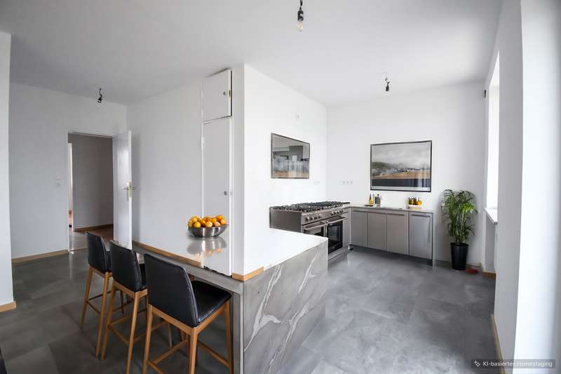 von Poll Immobilien presents you a refurbished 3rd floor apartment with balcony in the residential area Marshall Heights in Kitzingen. The three-room apartment is located in an apartment building with 8 residential units on a plot of approx. 1150 m². The apartment has a living area of about 98 m². The floor plan includes a large and bright living room and two bedrooms, a kitchen and a bathroom with shower. The balcony, on which a 600W photovoltaic system is installed, offers a wide view. The apartment also includes a basement compartment and a parking space directly in front of the house. The apartment building, built in 1951, was extensively renovated in 2022. The building has a new heating system, parquet/tile floors and partially new electrics. The entire property is in very good condition and there is no need for renovation in the near future. The apartment is currently rented. The rental income is approx. 10,400 € per year. For a more detailed real estate consultation up to the object inspection we are to you gladly at the disposal.