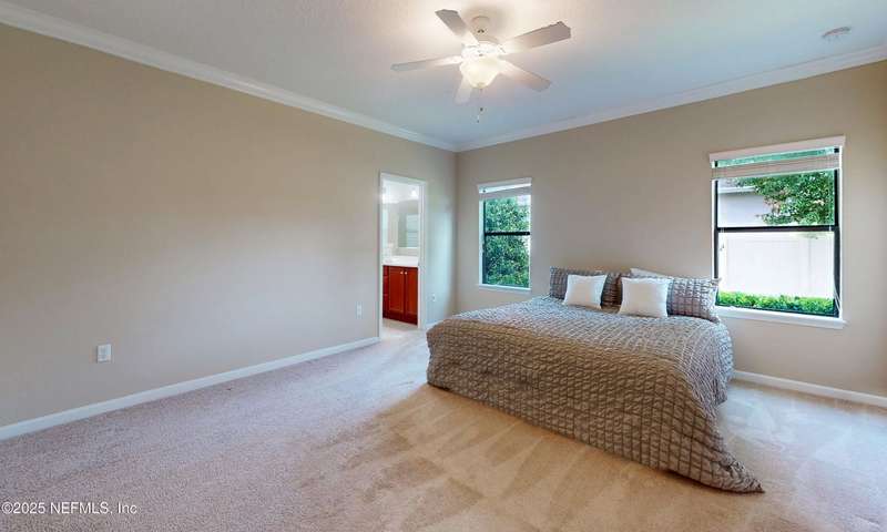 BUYER FAILED TO PERFORM, SELLER IS READY TO CLOSE! Welcome to this beautifully maintained, one-owner home offering a flexible floor plan and resort-style community amenities. The flex space with French doors-perfect for a home office or playroom. The gourmet kitchen includes a gas cooktop, double ovens and large granite island. All kitchen appliances, in addition to the washer, dryer, and water softener stay. Enjoy gatherings in the spacious family room with brand new LVP flooring and plenty of natural light. The private primary suite offers views of the fully fenced backyard. Primary bath features dual sinks, a garden tub and walk-in shower. Step outside to a screened lanai and fully fenced backyard-ideal for pets or play. Located in a golf cart friendly community just minutes from the beach. The community offers several pools, water slides, childrens splash pads, fitness centers, tennis/pickleball courts, playgrounds, and dog parks. Nocatee offers something for everyone.