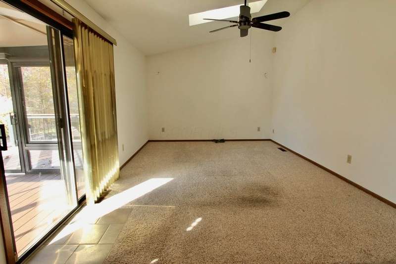 Amazing opportunity to own a spacious home in this desirable neighborhood at a great price! This as-is property offers over 2,243 sq. ft. of living space and tremendous potential. Features include a vaulted-ceiling great room, dining area, eat-in kitchen, and a family room that opens to a three-season room. Upstairs, you'll find two nicely sized bedrooms?one with unique ceiling lines?and a large loft with laminate flooring that opens to a balcony. There is a convenient half bath on the main floor, a full bath off the 1st floor Owner's Suite, and another full bath up! Enjoy the deck overlooking the backyard and the convenience of a two-car attached garage. With some repairs and updates, this home could truly shine!