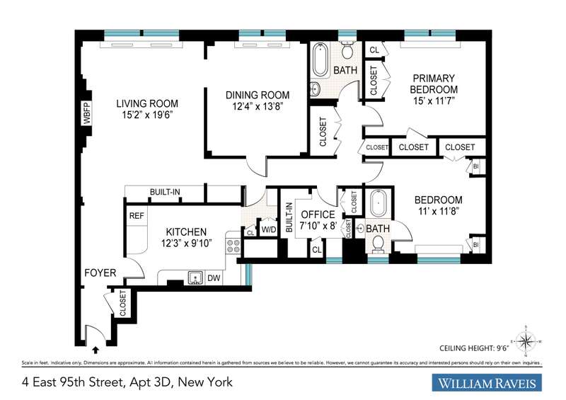 An exceptional opportunity awaits to own a classic six-room home on the third floor of the desirable 4 East 95th Street a distinguished prewar cooperative located on one of Carnegie Hill's most picturesque townhouse-lined streets, just moments from 5th Avenue and Central Park.lt;brgt;lt;brgt;A gracious entry foyer welcomes you into a beautifully proportioned, south-facing living room, where two oversized parlor windows frame treetop views of historic townhomes. The space exudes timeless character with a wood-burning fireplace, soaring beamed ceilings, and warm natural light. Adjacent, a spacious square south facing dining room provides an inviting setting for entertaining. This room could be converted into a comfortable third bedroom or guest room, offering added flexibility to suit your needs.lt;brgt;lt;brgt;The windowed kitchen offers abundant storage and the adjacent pantry area with a washer dryer adds extra functionality. The apartment also includes a hallway that separates th