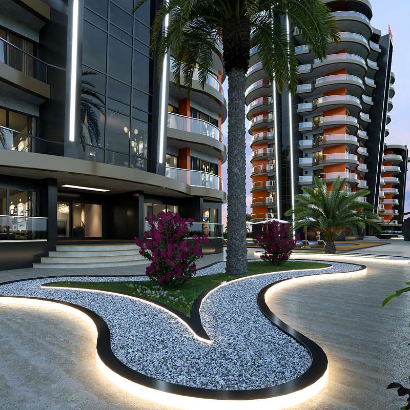 Alanya apartments for sale are located in Mahmutlar with a view of nature and the city, the 3-block complex is 400 m from the pharmacy, supermarket, health center, cafe/bar, 620 m from the sea and beach, 7 km from Alanyum Shopping Center, 14 km from Alanya Castle, 28 km from Gazipasa Airport.