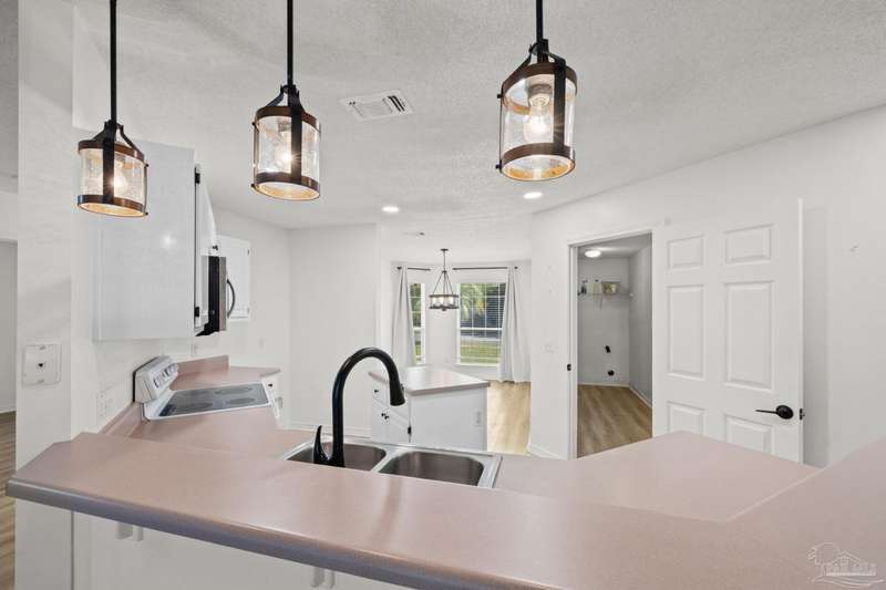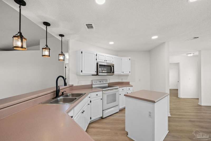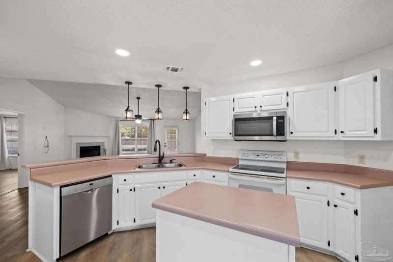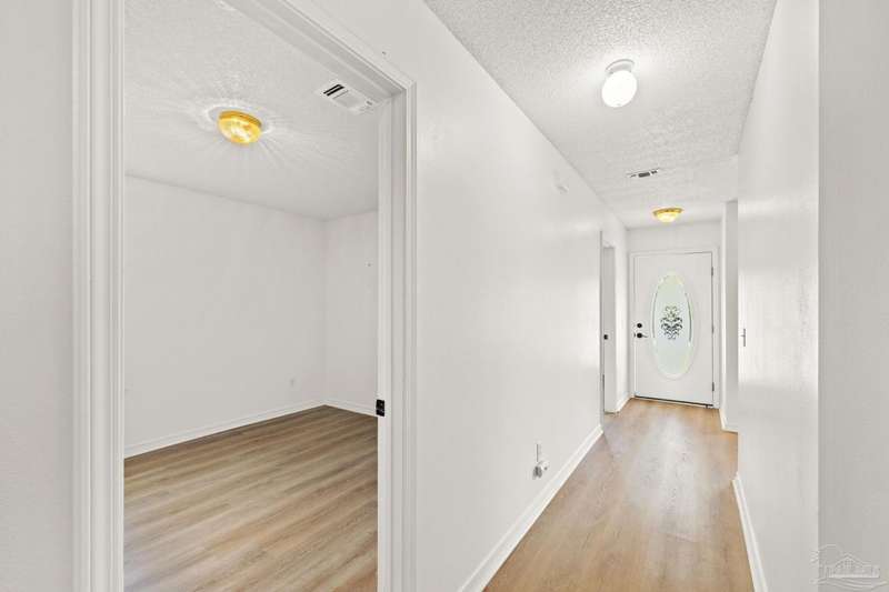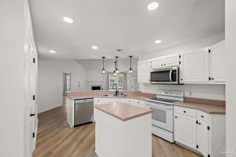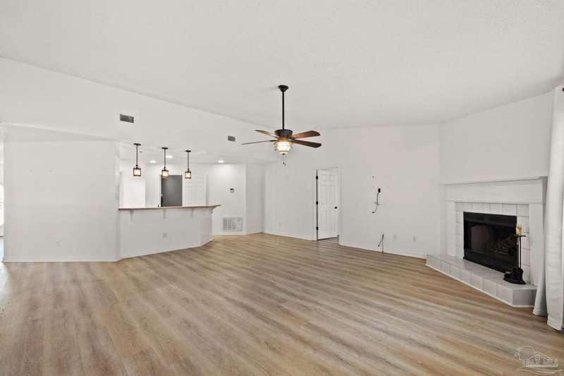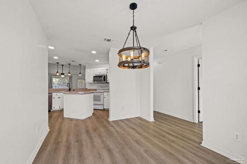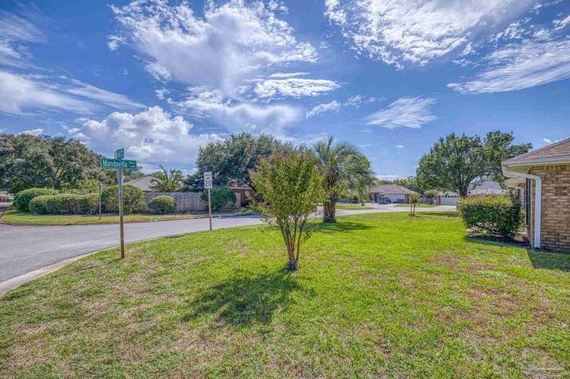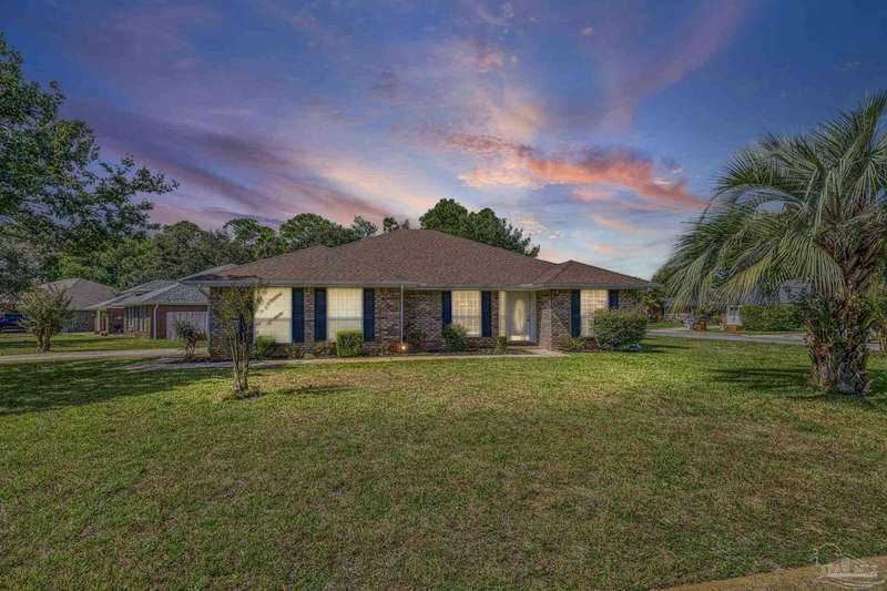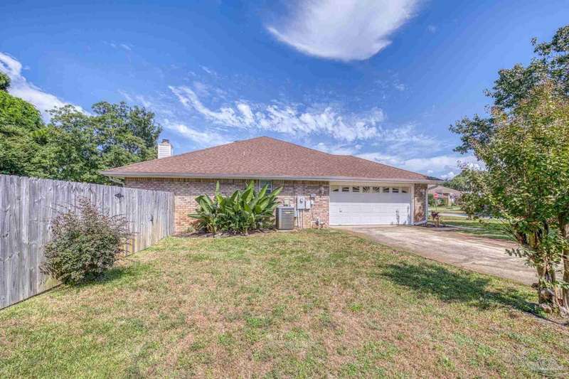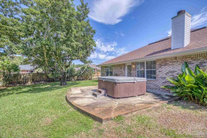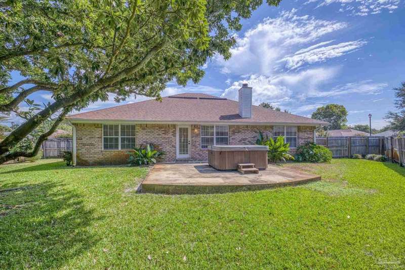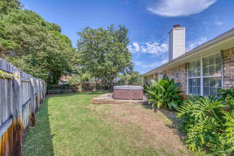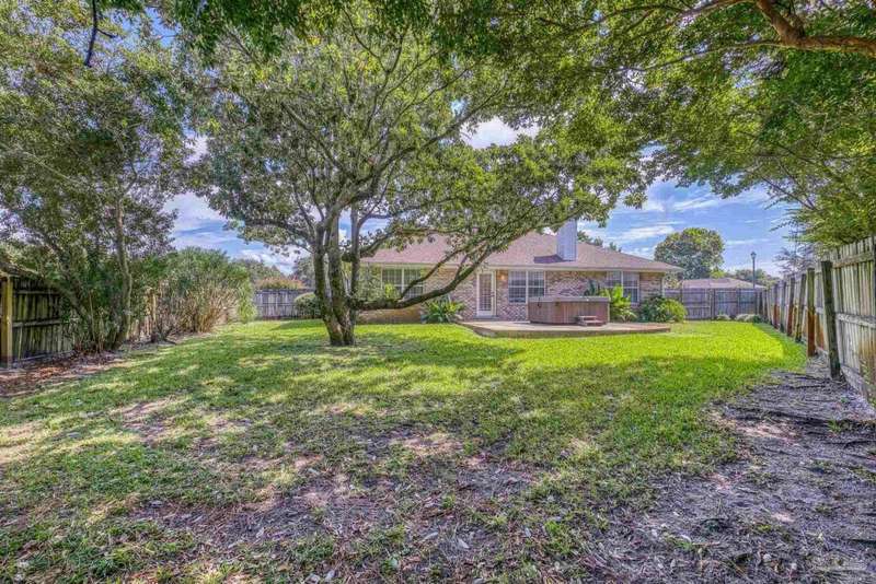 LOCATION, LOCATION, LOCATION!! Welcome to this all-brick - MOVE-IN READY home nestled in the highly desirable Midway area of Gulf Breeze. This 4-bedroom 2-bath residence is ready for you to call HOME. When you walk in, notice the high ceilings, new plank - wood - look flooring and natural light. The split bedroom floorplan offers the kitchen in the heart of the home, dining in the front and living room with fireplace in the back. The main suite is situated opposite of the 3 other bedrooms and that main bath - with 2 closets, double vanity, gardentub/shower combo and vinyl flooring is super clean. The other 3 bedrooms and hall bath are all ample size. The corner lot with fenced backyard and side-entry garage is situated facing east with the backyard shaded by mature trees. Oh - and there is a Hot Tub on the back patio so those trees also add privacy - yet you can still see the stars - jussayin'. Enjoy the best of the Gulf Coast with easy access to Gulf Breeze's top-rated schools, Pensacola State College South Campus, beautiful emerald water & white beaches either on Navarre or Pensacola Beach, and local shopping and dining. Don't miss the opportunity to add your own personal touches and make this Gulf Breeze gem your new home. Make your appointment today!
