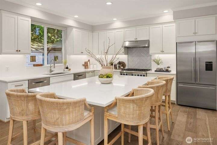 Welcome to this pristine 5-bed home in desirable Wedgwood! This home offers exceptional comfort & functionality—perfect for entertaining. The main level features a circular floor plan, including a home office/5th bedroom, sitting room, formal dining area, & a true chef’s kitchen complete w/ a premium thermador gas range, top-tier appliances, 2 dishwashers, & ample counter space. Unwind upstairs in the primary suite w/ a 5-piece bath & generous walk-in closet, a secondary bedroom w/ its own ensuite, plus 2 more bedrooms & a bonus room—ideal for a playroom, media space, or 2nd office. This home blends custom craftsmanship w/ everyday practicality just minutes from University Village, Downtown via expressway & a quick hop to Lake Washington.