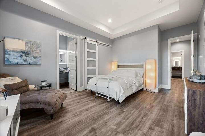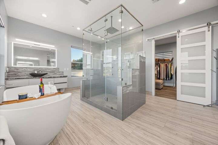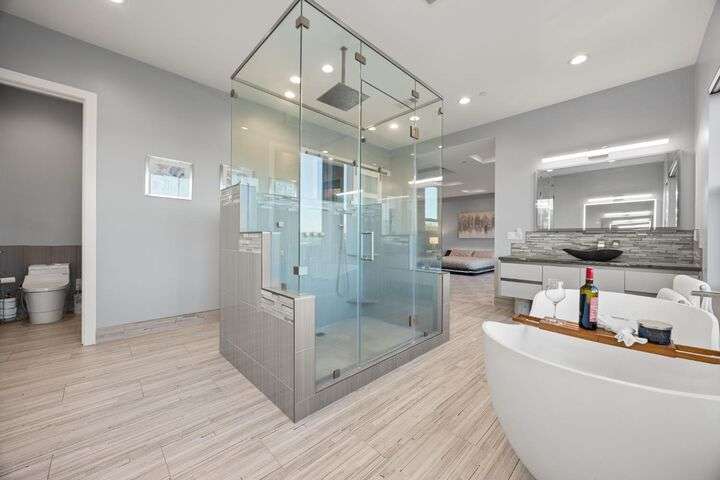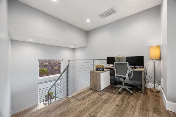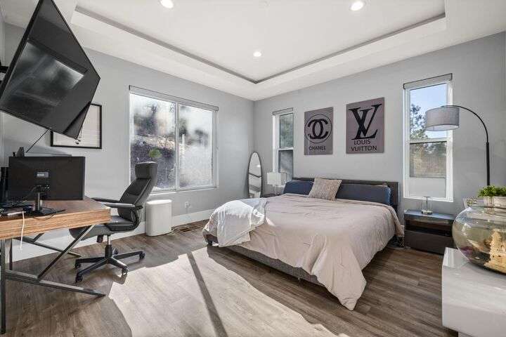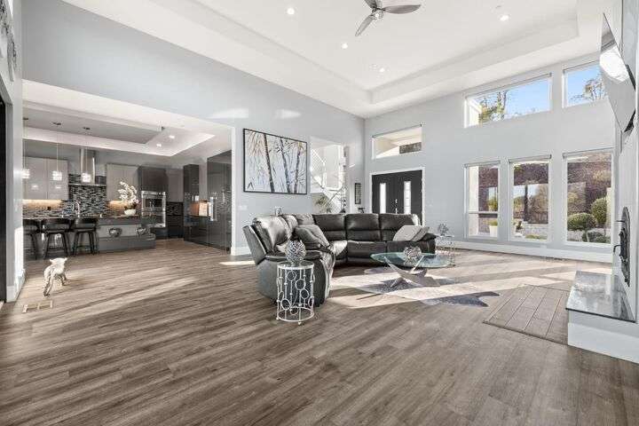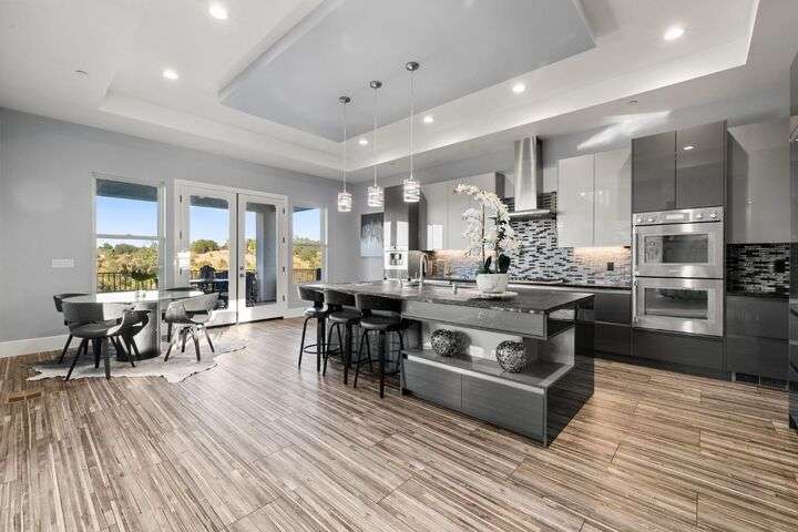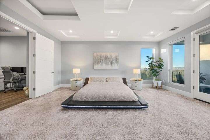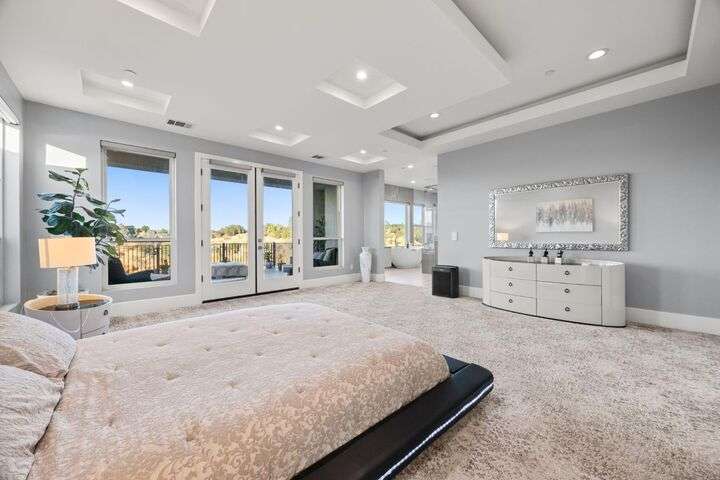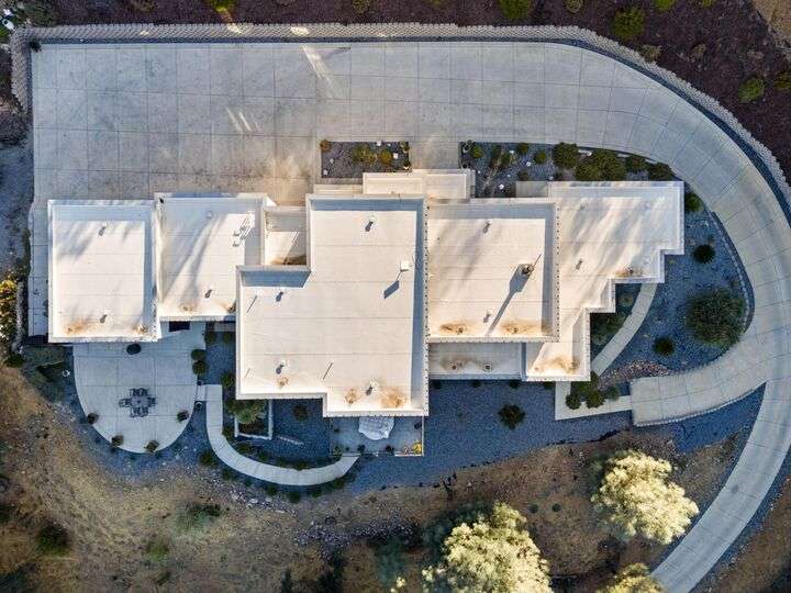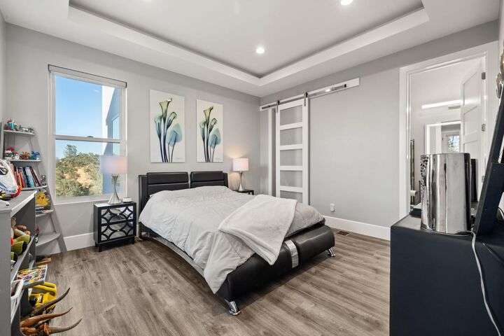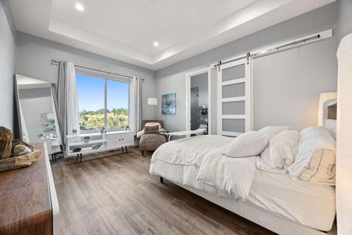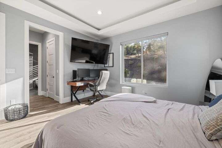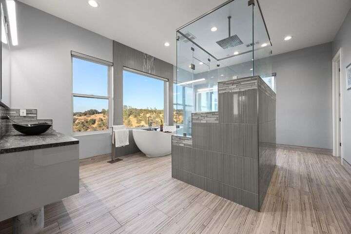Luxury mountain top mansion - exquisitely appointed contemporary work of art with one of Northern California's finest views. Unbelievable value: over 5,000 sq ft, floating stainless cable staircase, dramatic double-height ceiling. Entertainer's kitchen with Thermador appliances, built-in panel refrigerator, wall coffee maker, pot filler, prep sink, and gloss European flat front solid wood cabinetry. Soaring floor-to-ceiling fireplace, remote-controlled window treatments. Multiple balconies with fully tiled flooring overlooking canyon and private reservoir. Paved road leads to sprawling driveway, finished oversized garage, and ample parking. Lower level perfect for fitness facility with bathroom/shower or multigenerational living. Built in 2020 - construction and detail impossible to duplicate at this price. Minutes from town and freeway, yet feels like a private compound with auto-controlled front gate on 6 acres. Primary suite with private office, walk-out balcony, spa-like primary en suite with rainfall shower, and soaking tub. MUST SEE!