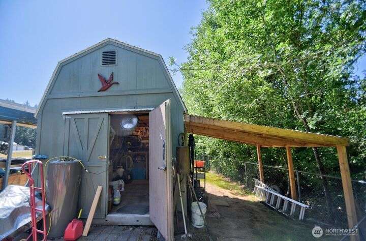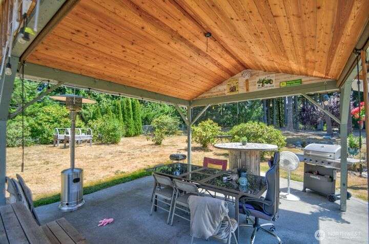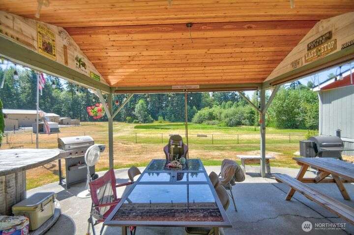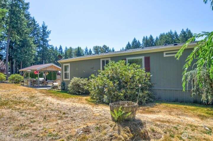 Discover your perfect country escape! This 1,344 sq ft home sits on 2.59 fenced acres, offering a private setting. Inside, you'll love the bright, open-concept layout with vaulted ceilings, 2 bedrooms, 2 baths, and a den. Large windows frame beautiful views of your personal acreage and the private pond. The property is an outdoor lover's dream, featuring a covered patio for entertaining, a detached carport, and a handy outbuilding for storage or hobbies. There’s plenty of room for animals and all your toys! Enjoy peace of mind with major upgrades, including a brand-new roof and an efficient heat pump. Nestled in the quaint town of Rainier, this home offers a quiet lifestyle while being close to local parks, trails, Yelm, Lacey & JBLM