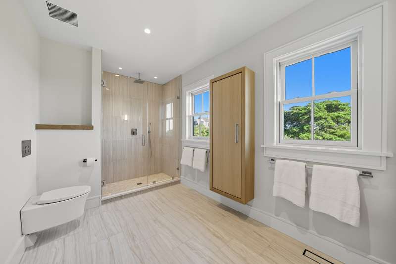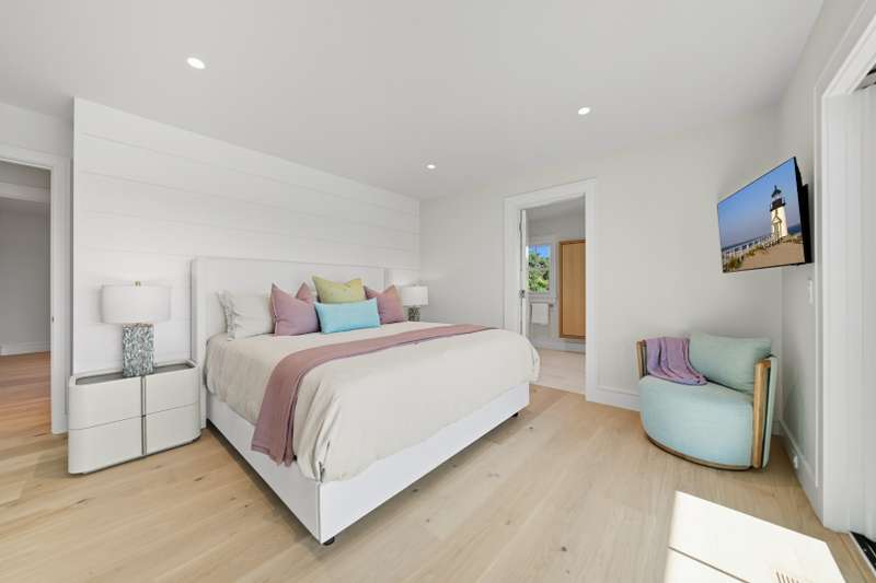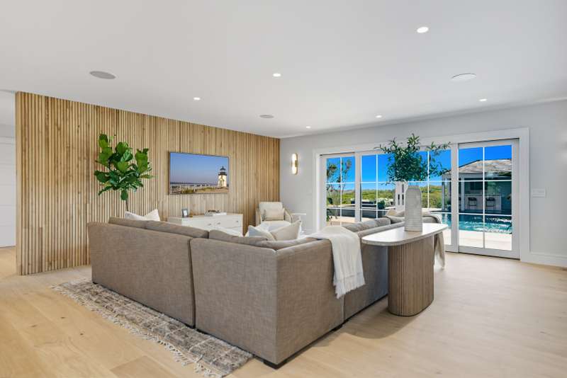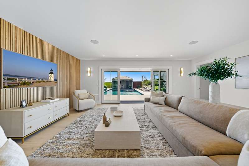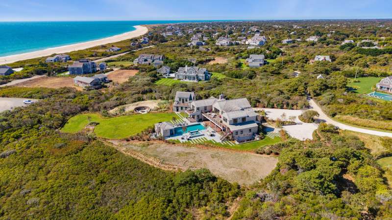 Your Beach and Entertaining Lifestyle Estate awaits! With breath-taking views of the ocean, unsurpassed access to the popular surfing beach of Nobadeer, and over 8,000 sf of high end, new construction, executed with a smart contemporary aesthetic, 51 Weweeder ticks every box. Imagine being able to grab a towel and walk out your backyard to the beach located less than 200 yards away. With six en suite bedrooms in the main house, including an entire nanny apartment located on the lower level, plus a separate studio apartment above the two car garage, there is plenty of room to accommodate large groups of family and friends. The exterior entertainment spaces abound. The generous pool (38' x 20') and spa (10' x 8) are a focal point, framed on one side by the first and second floor decks of the house and on the other side by the cabana. Choose between an intimate propane-fired fire pit located on the bluestone patio conveniently sited between the spa and cabana, or put your feet in t