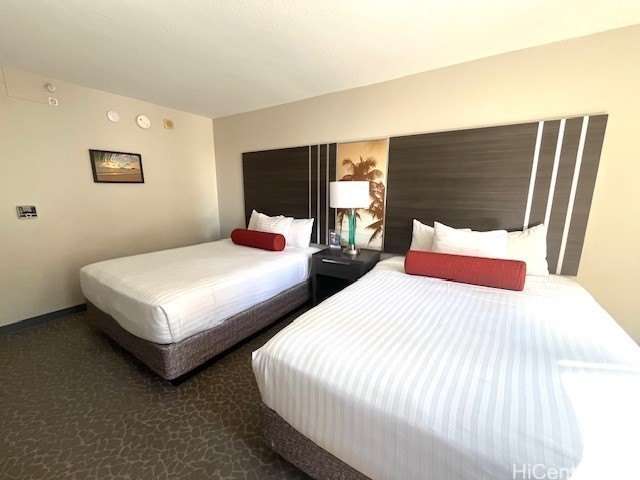 Don't miss out to own the premier unit that comes with two assigned parkings! The desirable Diamond Head & ocean view unit in Palms at Waikiki. It is conveniently located at gateway to Waikiki and also close to Ala Moana Center, Duke Kahanamoku Lagoon and Fort DeRussy. Ther are on-site amenities including BBQ, A pool and sun deck and restaurant. Guest rooms were newly renovated in 2020 with carpet, cabinet, closet, furniture, curtain and fresh paint. There are microwave and refrigerator at the kitchenette. Tasteful furnished and decorated but the earth color makes Hawaiian & contemporary style. There are sprinklers and wired smoke detectors in the building. The unit is currently in the hotel pool which is managed by Aqua Aston. New Ower can take over or manage by itself.
