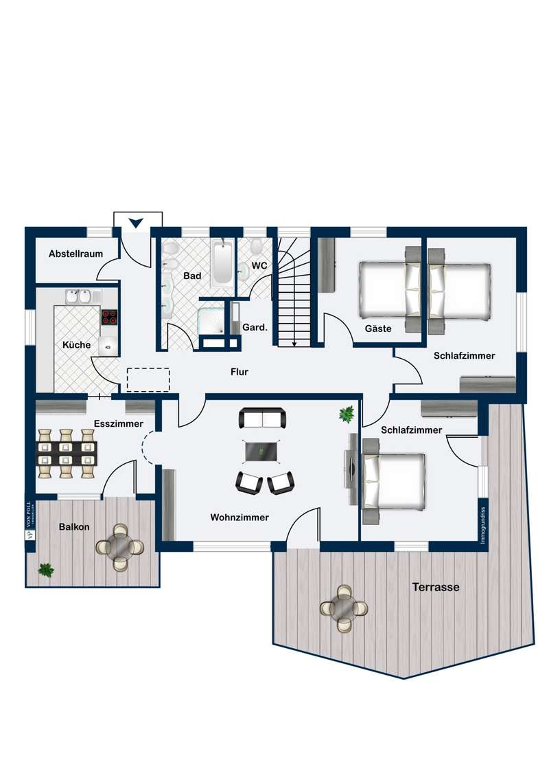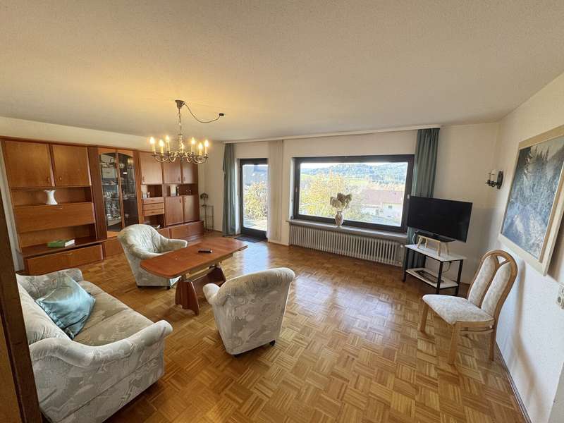 For sale is a well-kept detached house that was built around 1975 and has been kept in good condition. The property impresses with its generous living space of approx. 205 m² on a fenced plot of approx. 812 m² in a quiet location with wonderful views. The attractive south/west orientation offers optimal sun conditions and would lend itself to the installation of a PV system. Inside the house you will find a total of five well-designed rooms and 3 bathrooms. The bathroom on the first floor was renovated in 2023 and features contemporary fittings. The guest area also offers a nice opportunity to comfortably accommodate friends and family when they visit. The property can be taken over partially furnished and has two separate entrances, which offers flexible usage options, such as setting up a separate office for working from home. The main apartment is located on the upper floor, which can be easily accessed separately from the lower area via the second entrance at the rear of the house thanks to the hillside construction. Here you will find 3 bedrooms, the spacious living room with terrace access, the adjoining dining room with balcony and the kitchen next door. A separate laundry room, the guest WC and the spacious bathroom with shower and bathtub complete this floor. A spacious garage with storage room is available for vehicles. Thanks to the well-kept condition of this property, you can move in immediately or modernize it to your own taste. We look forward to your inquiry.