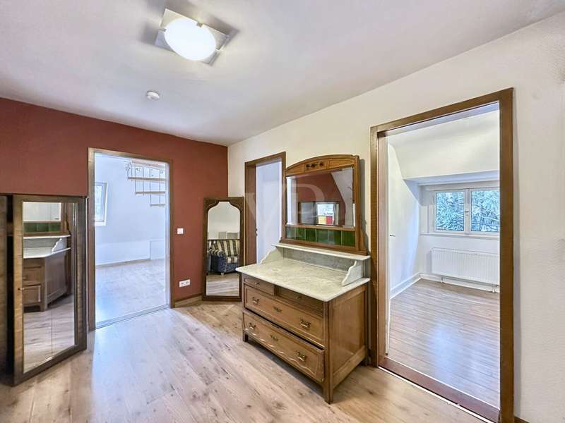 This detached apartment building was built in 1933 and is situated on a plot of approx. 427 m². The living space is approx. 300 m² and is spread over three floors as well as a converted attic gable. Balconies are also available. The building was last extensively modernized in 2006 and meets today's living standards in many areas. The property comprises a total of 13 rooms and offers a wide range of possible uses thanks to its room layout. The three main residential floors are divided as follows: The first floor and the upper floor each have approx. 105.25 m² of living space. The top floor has been converted and houses an approx. 80 m² maisonette apartment. In addition, the comfortably designed basement room can be used as an office. The total rentable living space is approx. 300.75 m². The fittings include modern fitted kitchens on the first floor and top floor. The rooms on the first floor are fitted with high-quality oak parquet flooring and carpeting. Sound-insulating double glazing on the first floor ensures a pleasant quality of living. The building is heated by gas floor heating. The location of the property offers good connections to the urban environment. Shopping facilities, schools and public transport are all within easy reach. The small garden offers additional outdoor space and extends the possible uses for residents. This property is suitable both for owner-occupation and for renting out. Thanks to the modernization measures already carried out in 2006, the property is in a well-kept condition, while the existing room layout opens up a wide range of potential uses. For further information or to arrange a viewing appointment, please do not hesitate to contact us.