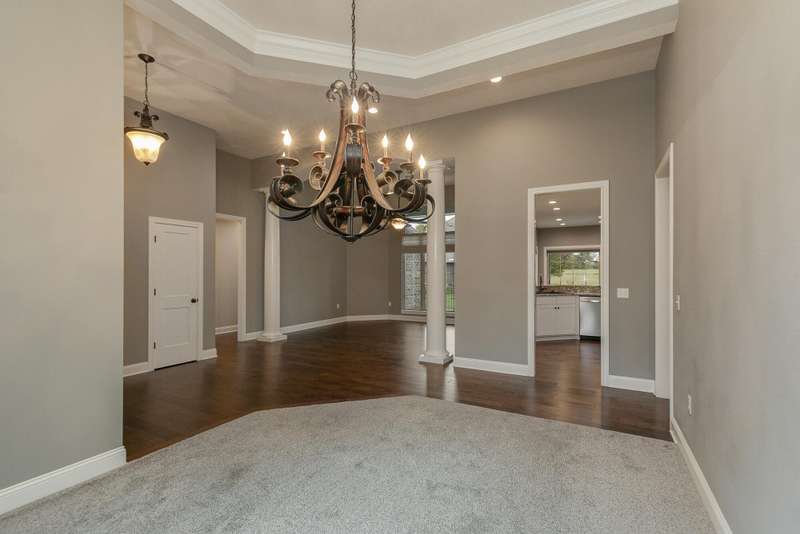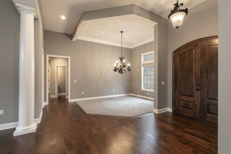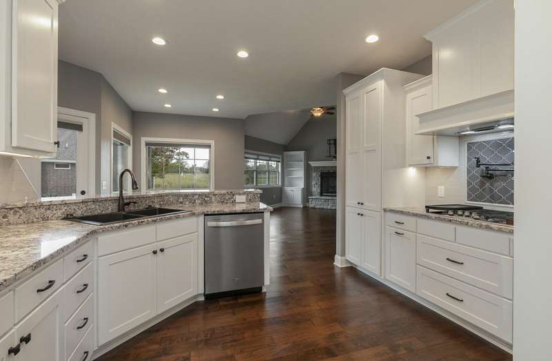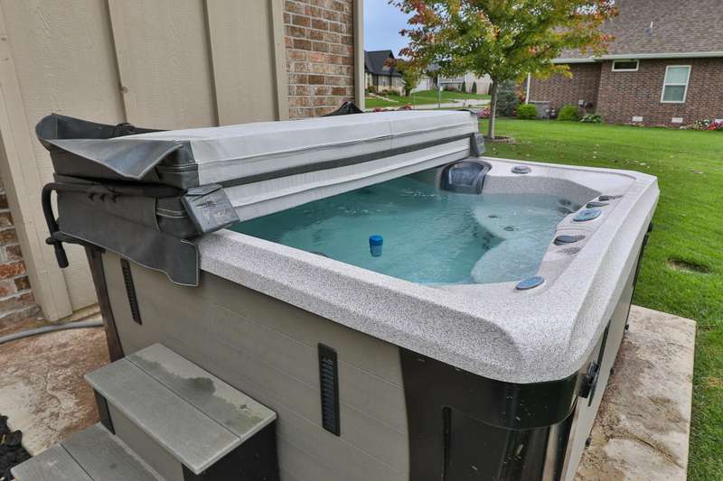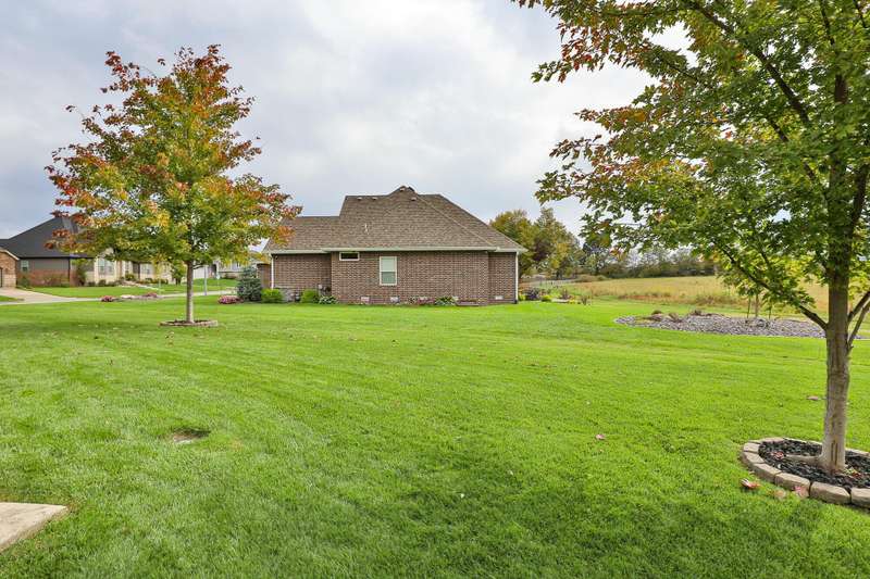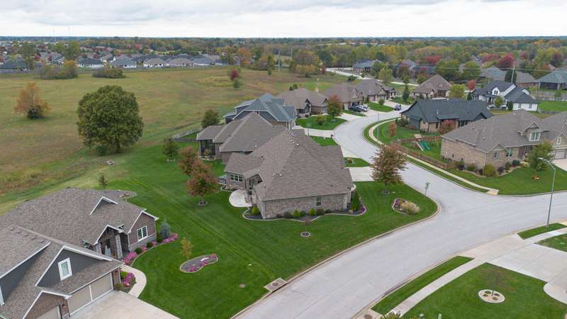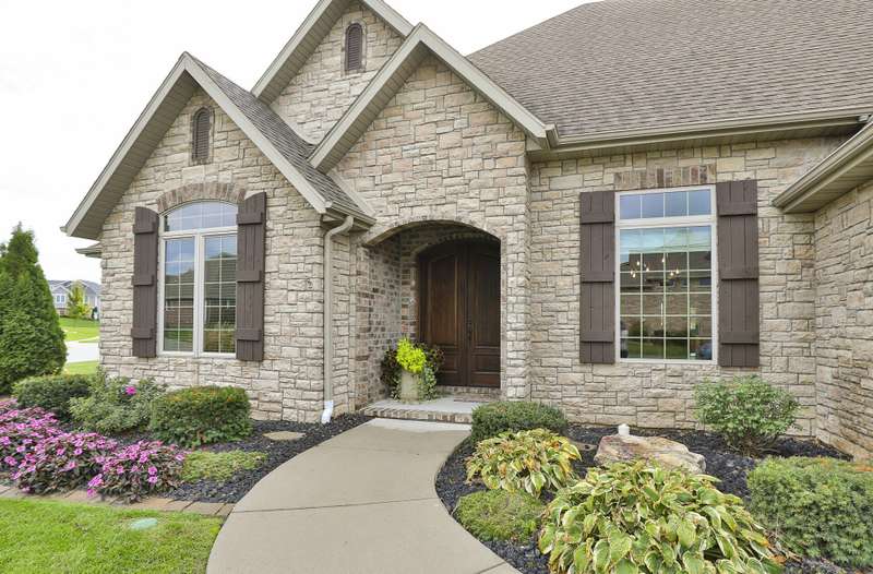 Welcome to 842 E Abbey Court in Nixa! This all brick and stone beauty sits on a large corner lot with impeccable landscaping and offers approximately 2,800 sq ft of living space, all on one level, in the highly sought-after Village of Wicklow at Roundwood community. Timeless curb appeal greets you with an elegant arched brick and stone entry leading to a covered front porch and beautiful double arched solid wood doors. Inside, you'll find two inviting living areas, a formal dining room, and a well-appointed kitchen with breakfast nook. The hearth room features a cozy gas fireplace flanked by custom wood bookcases, while the kitchen shines with striking granite countertops, GE Profile stainless appliances (including the refrigerator), a gas cooktop with pot filler, undercabinet lighting, soft-close drawers, and beautiful white cabinetry.The thoughtfully designed split bedroom layout includes four spacious bedrooms and three and a half baths. The primary suite showcases a trayed ceiling with cove lighting, an expansive walk-in closet, and a gorgeous ensuite bath with dual vanities, a large tiled shower with built-in bench, and a relaxing soaker tub. Just off the primary suite, enjoy an inviting outdoor oasis with a six-person Marquis hot tub featuring MicroSilk hydrotherapy and an automatic FROG chemical system for easy maintenance. Two bedrooms on the opposite side of the home share a roomy Jack and Jill bath with dual sinks, while a fourth bedroom enjoys its own ensuite bath, perfect for guests.The spacious laundry room, located just outside the primary suite and near the garage entry, features a soaking sink, abundant cabinetry, and generous counter space for folding. Outdoor living is a dream on the covered back deck with an extended stamped concrete patio, accessible from both the living room and kitchen--ideal for grilling and entertaining. Additional highlights include tall ceilings with detailed treatments throughout, rich engineered hardwood