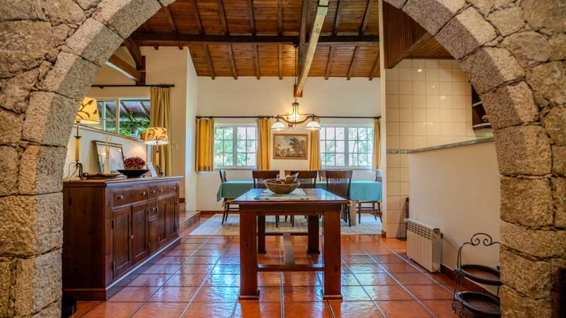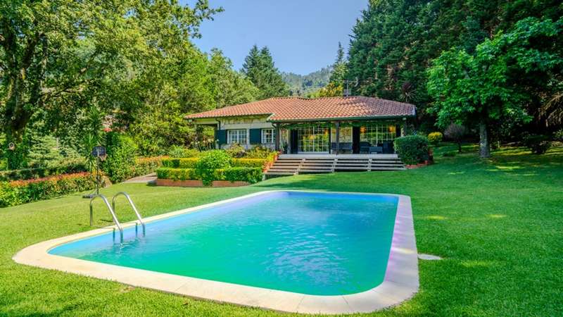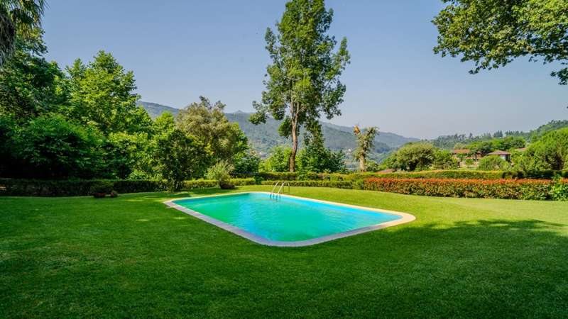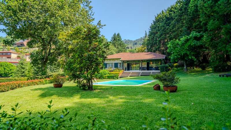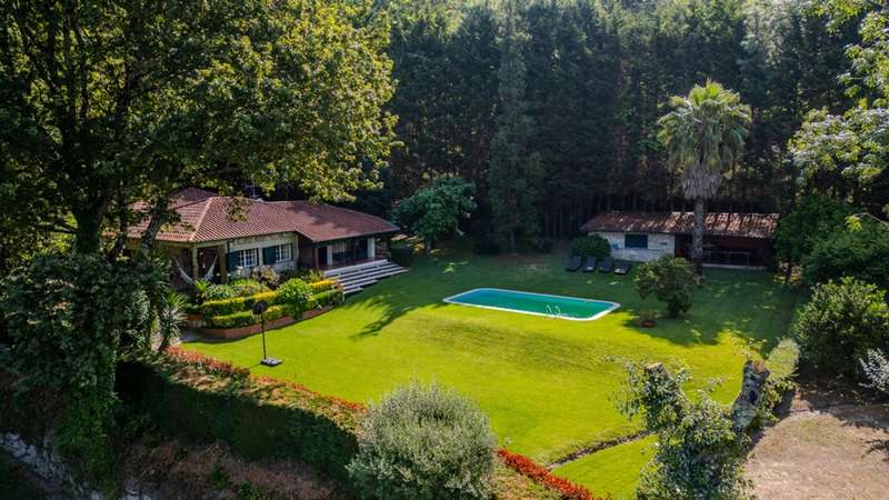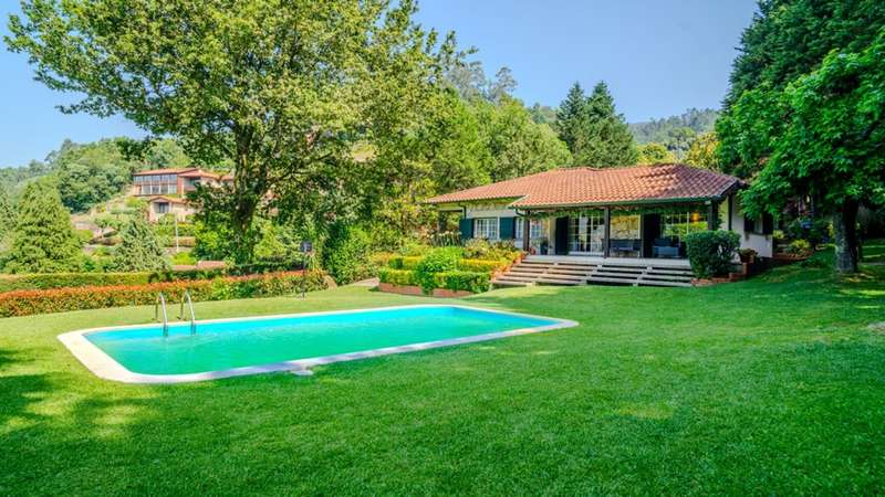 Set in a natural, private and peaceful environment, with easy access to the National Road, this beautiful property stands out for its unique details, generous areas, garden and terrace. The outdoor swimming pool, large green spaces , fruit trees, barbecue and unalterable, breathtaking views of the mountains of the Peneda-Gerês National Park and the Cávado River make this property an exclusive place, an authentic refuge that provides moments of leisure and family togetherness. Comprising an open-plan living room and kitchen, a dining room with panoramic views and a living room with a fireplace, the house also has a games or events room, as well as a barbecue area with a toilet. In the private area there are five bedrooms, two of which are en-suite, plus a full bathroom. The property could be a meeting place for family moments, as well as becoming an investment in residential tourism, as it is located 5 minutes from the river, 10 minutes from Vieira do Minho, 30 minutes from Braga and 1 hour from Porto. CHARACTERISTICS: Plot Area: 2 349 m2 | 25 284 sq ft Deployment Area: 230 m2 | 2 476 sq ft Building Area: 460 m2 | 4 951 sq ft Bedrooms: 5 Bathrooms: 4 Energy efficiency: D