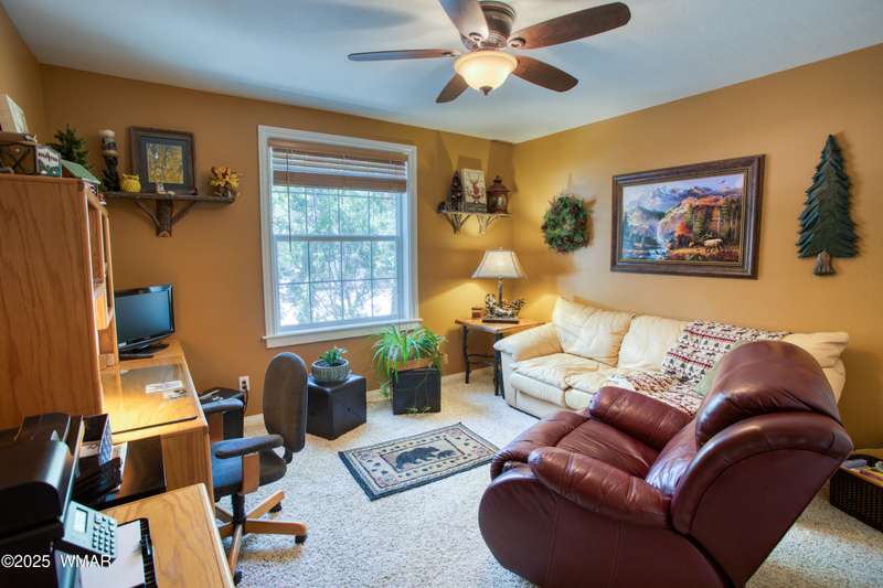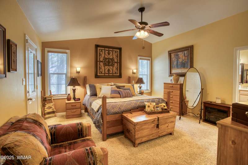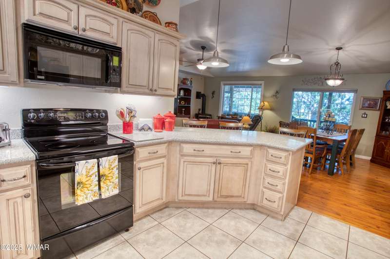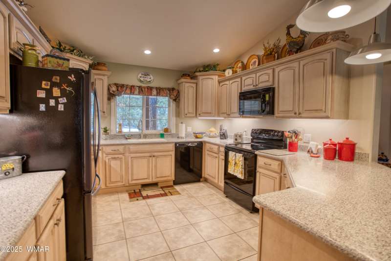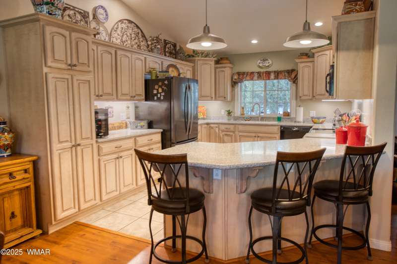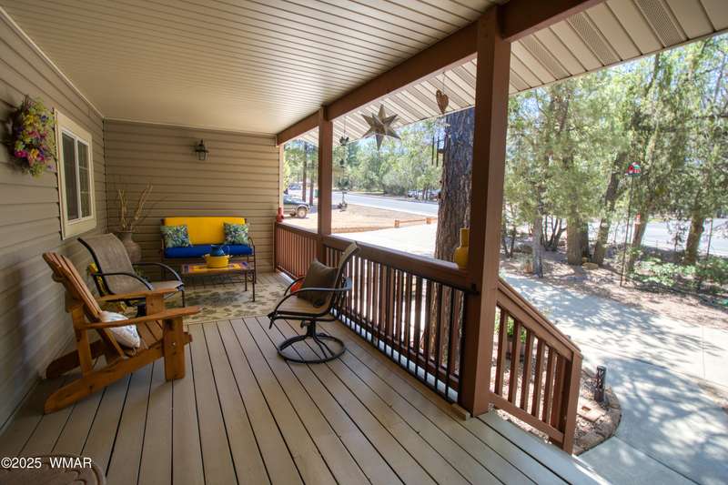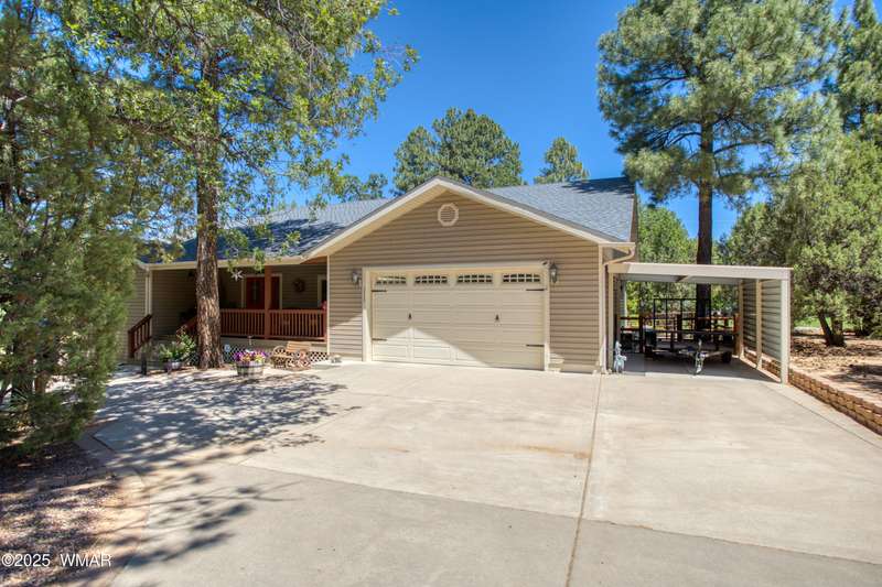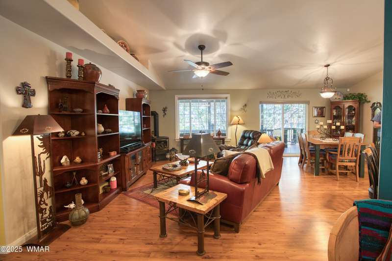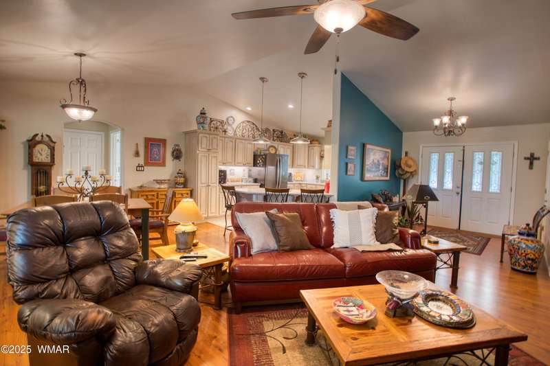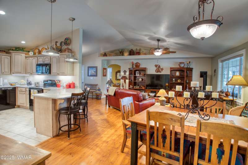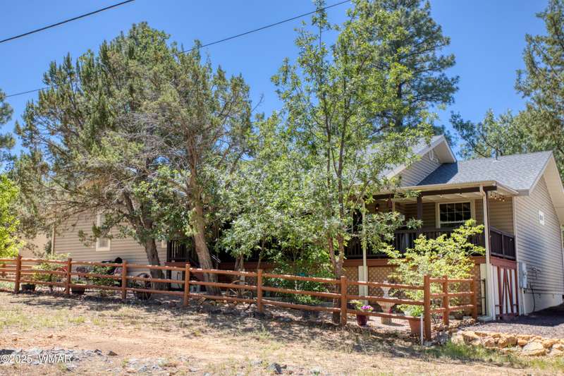 Welcome home to this Charming Fairway Retreat in the beautiful White Mountains! Pride of ownership shows! Nestled on the fairway of a quiet, beautifully maintained golf course, this warm & inviting mountain home offers a mix of both peaceful surroundings & an active outdoor lifestyle. The entry way leads to a spacious, open-concept living, laminate floors, vaulted ceilings, & soft, natural light throughout. The living room flows effortlessly into the kitchen. A cook's dream w/custom cabinetry, countertop space, black/stainless steel appliances, & a generous breakfast bar perfect for casual dining or conversation. Outside, enjoy your morning coffee & unwind on the covered patio as golfers quietly pass by. Entertain in the open living space or enjoy the location viewing the fairway.