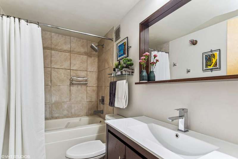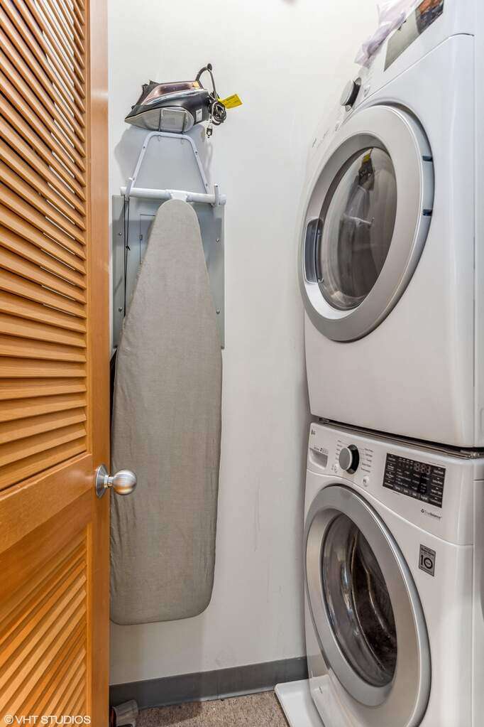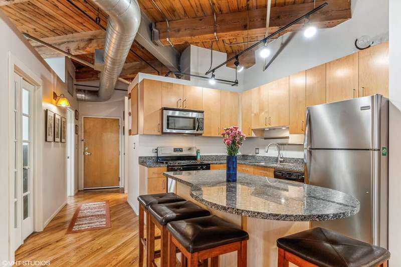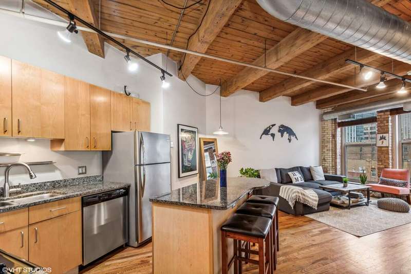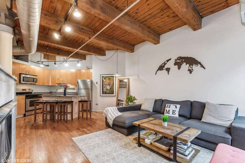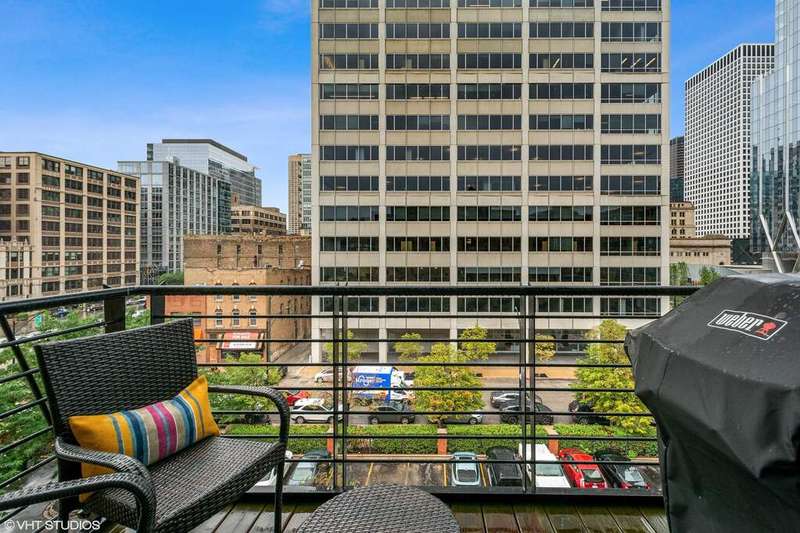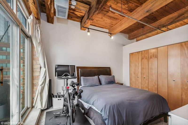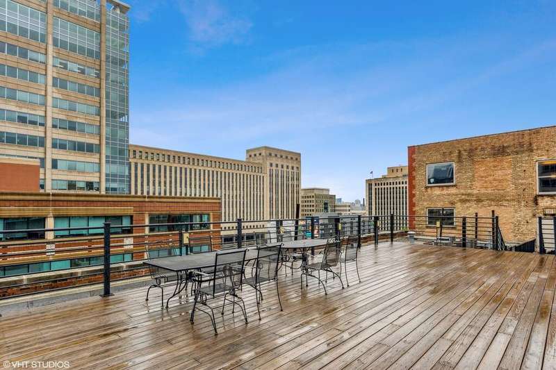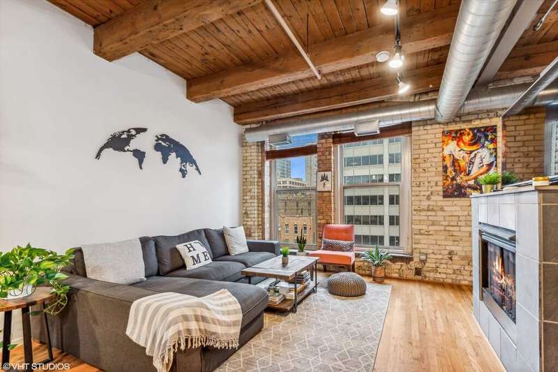 Spacious One bedroom plus den in the historic Gotham Loft building! Unit features exposed brick, high ceilings, hardwood floors throughout living and kitchen area, gas fireplace, newer full size stackable in-unit laundry and a private balcony off the bedroom overlooking the new Green at 320 city park. Building features a 24 hour fitness center, bike room and common rooftop deck. Close to 90/94 expressway, CTA Blue Line, and hot Chicago restaurants. Lease available 9/15. No pets. Gated parking additional $180.