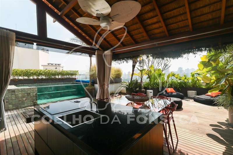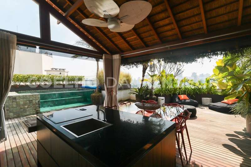 Cobertura no bairro Brooklin com 340m² área privativa/útil, 2 dormitório(s), 2 suíte(s), 4 vaga(s), 3 banheiro(s), piscina, churrasqueira, terraço, duplex, ar condicionado, dep. de empregados, varanda gourmet.