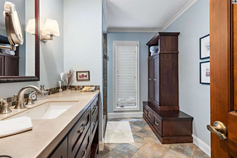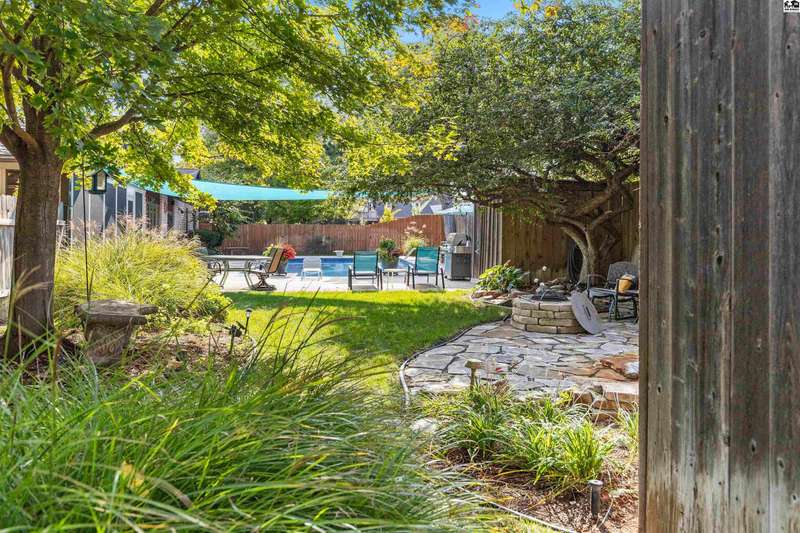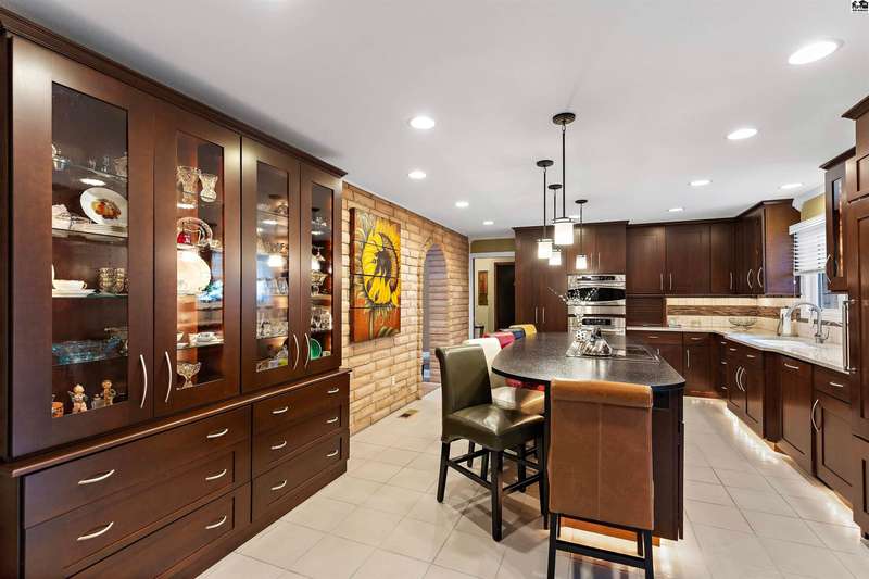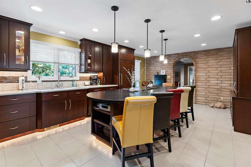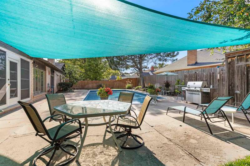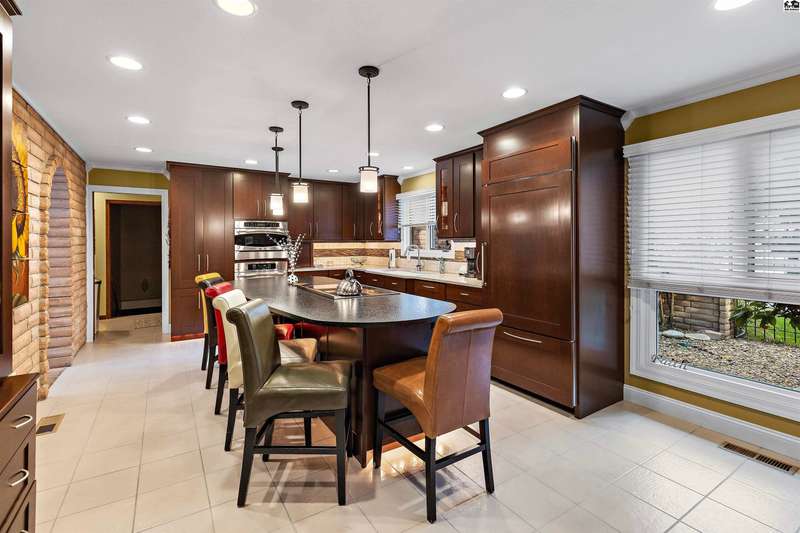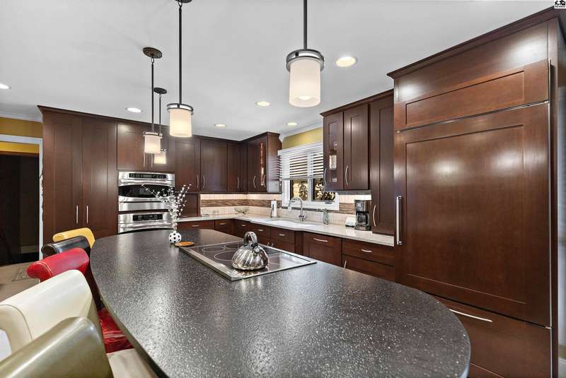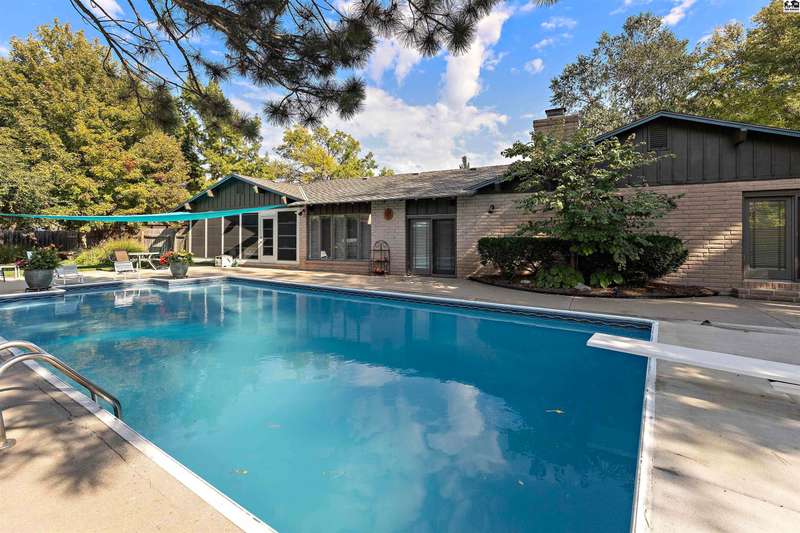 From the circle drive to the courtyard, the foyer welcomes with a view to the living room, a stunning brick fireplace and the saltwater inground pool and patio. This three bedroom three bathroom home feels like a resort vacation. Enjoy an elegant Bartel custom kitchen, formal dining, three season sunroom, pantry and mudroom. The kitchen boasts a large quartz island with center cooktop for great conversations or casual dining, all complemented by a full stainless steel appliance package (Sub-Zero fridge, dual ovens), quartz countertops, tiled floor, The formal dining room sports cork flooring and a view of the pool. The spacious living room is wrapped in a custom brick wall, enhanced by the woodburning fireplace, and views of the pool. The primary suite experience includes oak floors, a nice sized closet, walk-in shower, radiant heat in the bath floor and patio doors to the pool. Two more bedrooms served by a hallway bath are spacious, all closets feature custom shelving. Appreciate quartz and onyx treatments in all the bathrooms. Outside, the saltwater pool, a steam sauna and secluded smokeless firepit convo area delight. Dual pane insulated windows, smart thermostat, all electric with air to air heat pump, updated custom lighting throughout, UGS and an oversize two car garage all for the discerning new owner. The partial basement has a small room for office, exercise or crafts and a mechanical room. Meticulously maintained. Come see and fall in love.