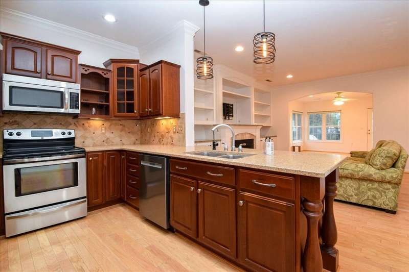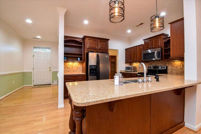 Beautiful and well maintained one level patio home with many upgrades on a cul-de-sac. Enjoy gorgeous views of the 17th green at Hanging Rock Golf Course from your gorgeous sunroom or expended brick patio. Recent upgrades and improvements include a beautifully remodeled and improved en-suite Primary bedroom, new roof, new air conditioner, exterior automatic awnings, and more. Home also includes custom cabinetry, built-ins, open floor plan, nice level lot, and an extra wide pulldown ladder for easy storage.