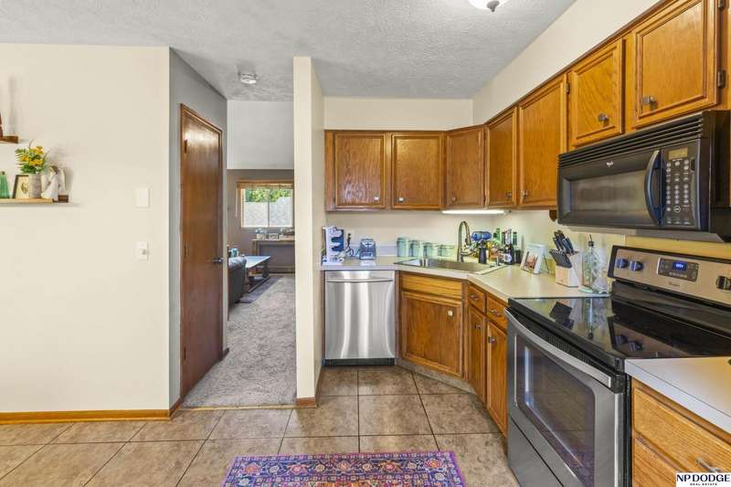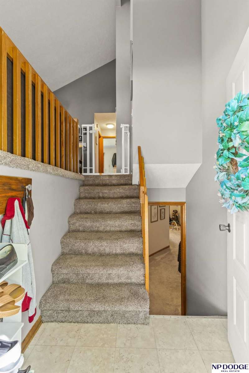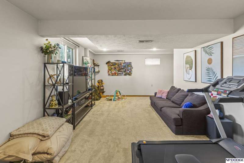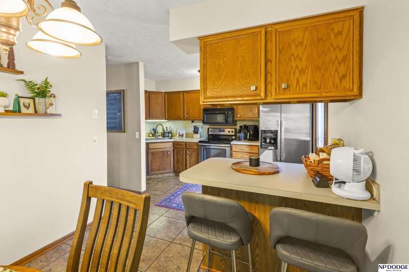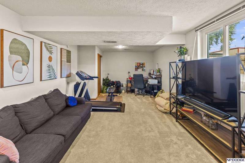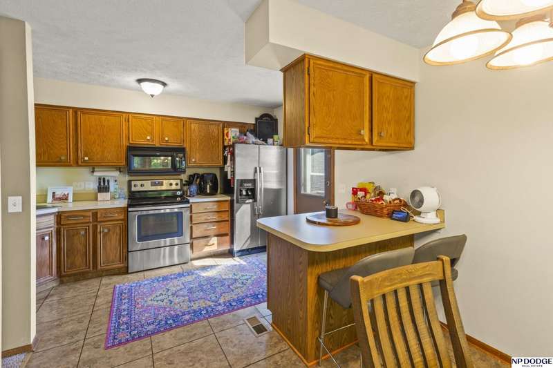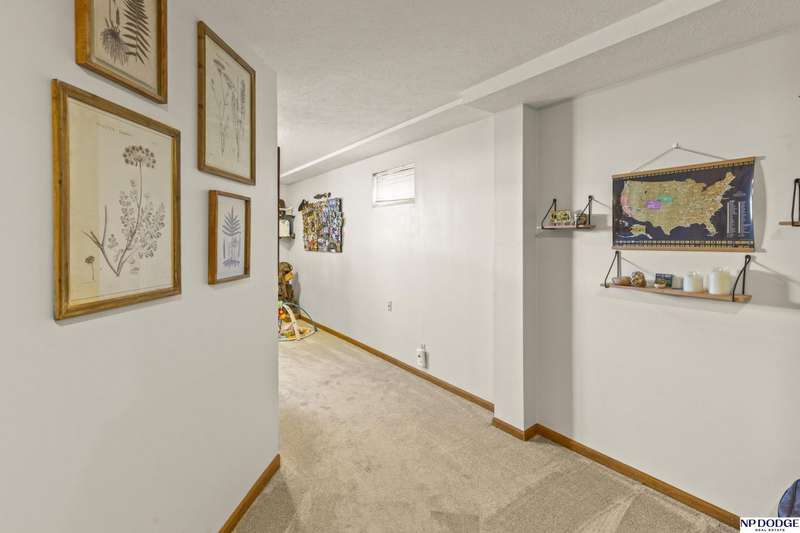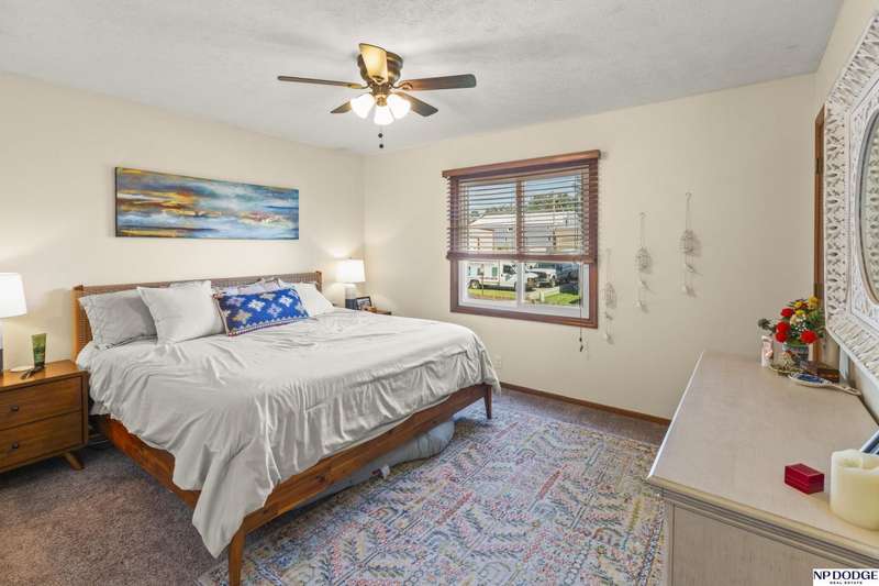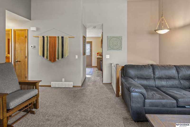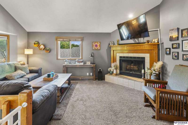 Nestled in a calm enclave in Ralston, this is sweet two bedroom two bathroom home is perfect for the first time homebuyer or if you're looking to downsize. The living room is spacious with vaulted ceilings and a fireplace to cozy up to. Large eat-in kitchen with southern natural light. Two spacious bedrooms on the main level with a full bathroom. Head down to the finished basement to entertain with movie night! For an added plus, this house has been updated where it counts: New skylight in bathroom 2023 New garage door 2023 New water heater 2023 New siding 2023 New coating on main tub/shower 2024 New roof 2024 New HVAC system 2025