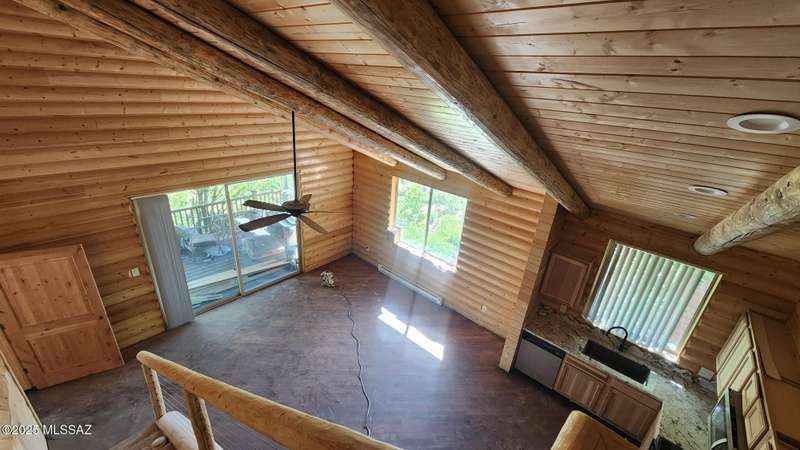 Cool mountain living at its finest! Stunning 2BR/2BA cabin custom built by award winning builder Al LeCocq. Soaring vaulted log beamed ceilings. Log siding and knotty pine siding on all interior walls and ceilings. Beautiful maple and hickory hardwood floors. Gourmet kitchen with hickory cabinetry, beautiful granite counters and SS appliances. Luxurious bathrooms with pedestal sinks. Spacious 340 sqft covered deck offering wonderful mountain views. Note the cabin with the split bedroom plan has a 2nd smaller kitchen perfect for guests, tenants, etc. The 150 +/- sqft loft (low ceiling) is not included in the square footage shown in MLS.