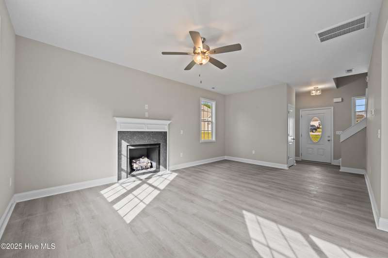 Welcome to this beautifully crafted 3 bedroom 2.5 bath two story home nestled on a quiet cul-de-sac lot. This thoughtfully designed residence features upgraded LVP flooring, cozy fireplace, and bright open concept layout for modern living. The kitchen is a true showstopper with sleek quartz countertops white cabinet and stainless appliances. Upstairs you will find 3 spacious bedrooms, The Master suite offers LVP flooring and a large walk in closet. Additional features include one car garage and new construction style with peace of mind