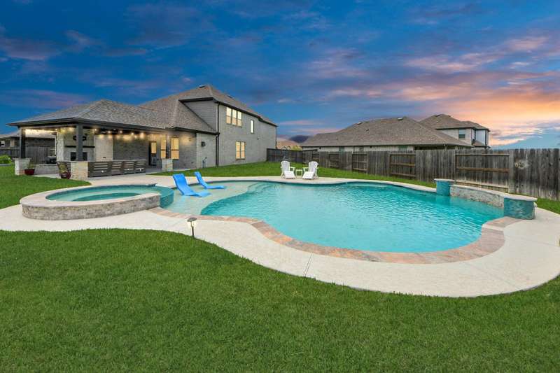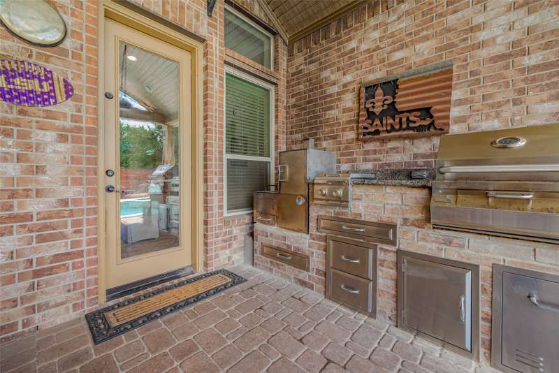 AMAZING Cinco Ranch 4 BED/4 BATH home with POOL, OUTDOOR KITCHEN and WHOLE-HOME GENERATOR! All bedrooms on 1st floor + huge upstairs bonus room w/full bath (possible 5th bedroom). Elegant wood floors, crown molding, private study with double glass door , formal dining with butlers pantry access to the kitchen. Spacious island kitchen w/double ovens, gas cooktop, granite, open to living room w/corner fireplace and tons of natural light. Large primary suite w/spa-style bath and dressing mirror. Backyard oasis features covered patio, pool w/waterfall, heater and chiller plus NO REAR NEIGHBORS! Zoned to top Katy ISD schools, close to shopping/dining!