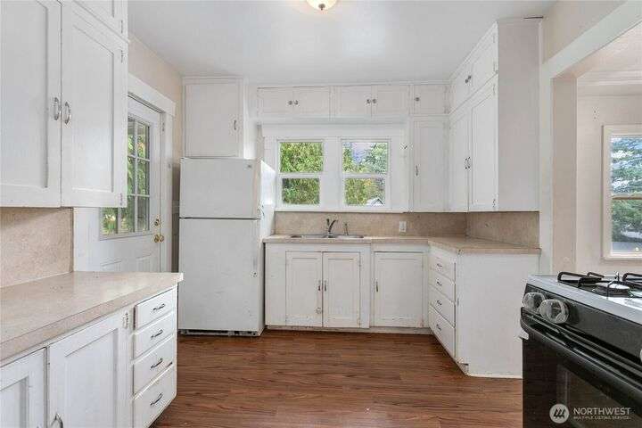 Charming home on a large corner lot in the desirable Geneva neighborhood! This 966 SF one-story home features 2 bedrooms and 1 full bath, plus a detached studio with a .75 bath that could be used for home office, storage space or, with a little TLC, extra space for guests. The unfinished 1,112 SF basement offers tons of additional storage space. Situated on a spacious lot with plenty of parking. Enjoy a great location close to Geneva Elementary, nearby trails, Lake Whatcom, and just 10 minutes to I-5. A wonderful opportunity to live in one of Bellingham’s most sought-after areas!