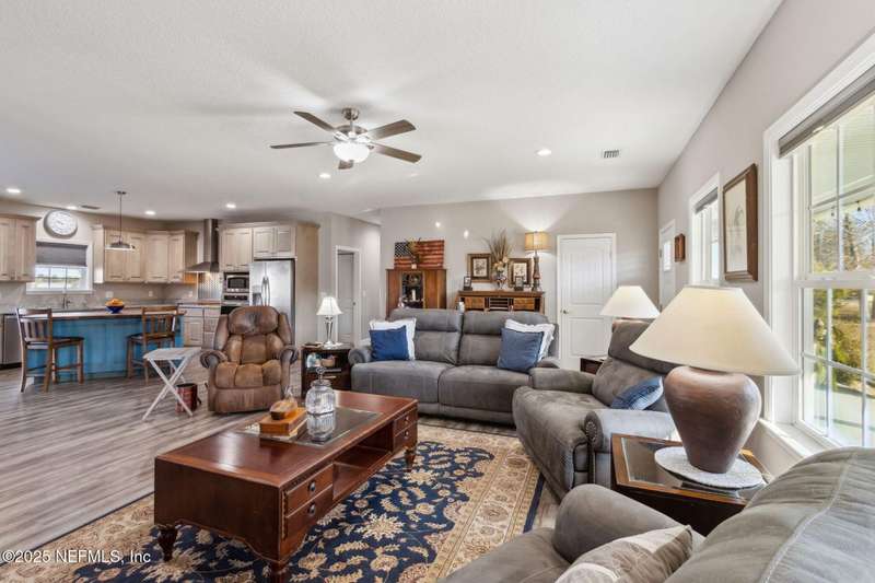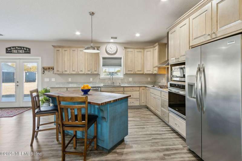 Peaceful Country Living with Custom Comforts on 4.25 Acres - No HOA! Imagine starting your day with a hot cup of coffee or winding down at sunset on the inviting front porch of this stunning custom-built home. Nestled on a generous 4.25-acre corner lot, this property blends modern comfort with serene country charm. Step inside to soaring 9-foot ceilings that create a spacious, airy feel throughout. Built for longevity, the home features a lifetime metal roof and durable Hardi lap siding. The heart of the home is the gourmet kitchen-perfect for any cooking enthusiast-with custom cabinetry, a gas cooktop, built-in oven, granite countertops, and a warm, butcher block island. The walk-in pantry includes custom shelving to keep everything organized and within reach. The thoughtfully designed split-bedroom layout offers 3 large bedrooms, 2 full bathrooms, and a light-filled office-ideal for remote work or a quiet reading nook. Natural light pours in from every angle, enhancing the sense of calm and comfort in every room. With two convenient entrances one from Henry Lee Rd and another from County Rd 121 access is a breeze, and there's plenty of space to spread out. Need room for projects or toys? The 1,200 sq ft detached garage, built in 2021, is fully equipped with three 10-foot doors, a 50-amp panel, 220V outlet, and ample outlets and lighting perfect for hobbies, storage, or a workshop. Located in the desirable Mills Creek area, known for its large lots and newer custom homes, this property offers the privacy and freedom of country living. Whether you're entertaining guests, working from home, or seeking a peaceful retreat, this home checks all the boxes and best of all, there's no HOA!