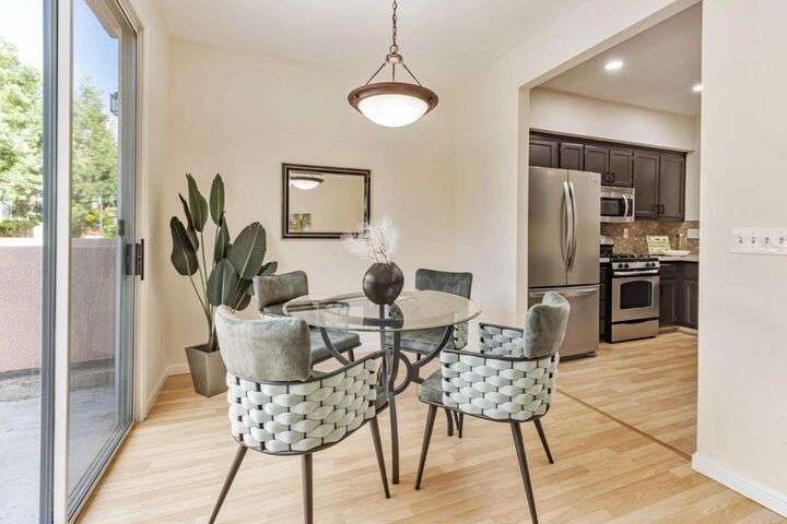 Welcome to this charming home located in the vibrant neighborhood of Evergreen, SJ offering 3 spacious bedrooms, including a walk-in closet in primary bedroom. The kitchen is equipped with modern amenities: granite countertops, a dishwasher, garbage disposal, microwave, oven range, refrigerator & RO water system, making it a perfect space for culinary enthusiasts. The home features a cozy living room with a fireplace, creating a warm & inviting atmosphere. The flooring throughout the home is a mix of stylish laminate & tile for durability/easy maintenance. Enjoy the convenience of an inside laundry area with a washer and dryer. The property includes a double garage for ample parking space. Freshly painted interior including Garage foxy paint flooring. Located within the Evergreen Elementary School District, this home is ideal for families seeking nearby top rated schools: TOM MATSUMOTO ELEMENTARY, CHABOYA MIDDLE & EVERGREEN HIGH SCHOOL. With central AC and central forced air heating, comfort is guaranteed all year round with a smart Thermostat. House includes Puronics Hydronex water softener. Enjoy the backyard patio & community pool on hot days or take a stroll to the popular Fowler Creek Park. Perfectly designed for modern living, this home is a must-see!