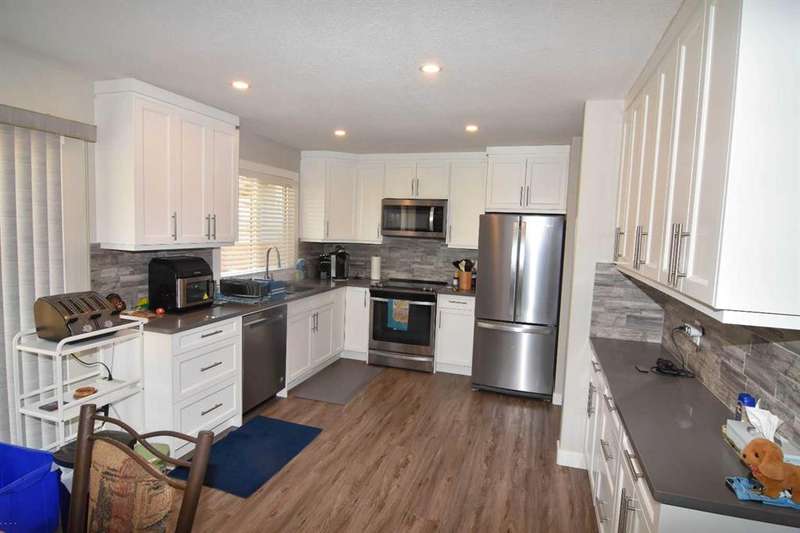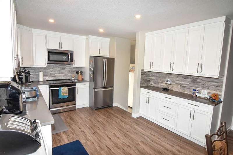 Tons of renovations in this home! New kitchen c/w white ceiling height cabinets, quartz counters, and stainless steel appliances. Patio doors off eating area lead to new 16' X 20' deck and concrete patio. Knock down ceilings, new flooring and paint throughout. 3 bedrooms on main floor and possibly two more down (one does not have egress window). Fully finished basement, except for laundry/utility room. 24' X 24' garage offers parking for two vehicles, with a spot for your RV beside the garage - and there's still a huge back yard for the kids to play. Nothing to do but move in and enjoy. Or if you're looking for some extra income you could easily have a legal suite in the basement (with proper permits from the City of Calgary) - and you would have enough parking for everyone! SELLERS ARE VERY MOTIVATED - BOOK YOUR SHOWING AND BRING US AN OFFER!!!
